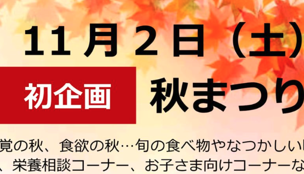 お知らせ【初企画】秋まつりを11月2日(土)に開催いたします。