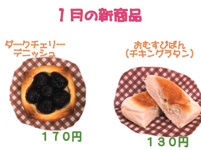 お知らせ1月の手作りパン販売は、24日(金)です。