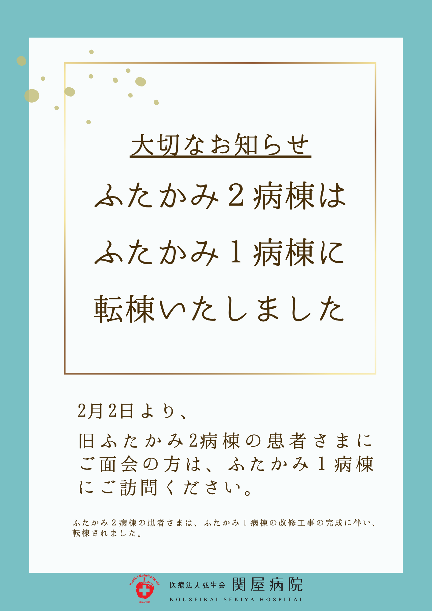 お知らせ新着情報ふたかみ2病棟が転棟しました