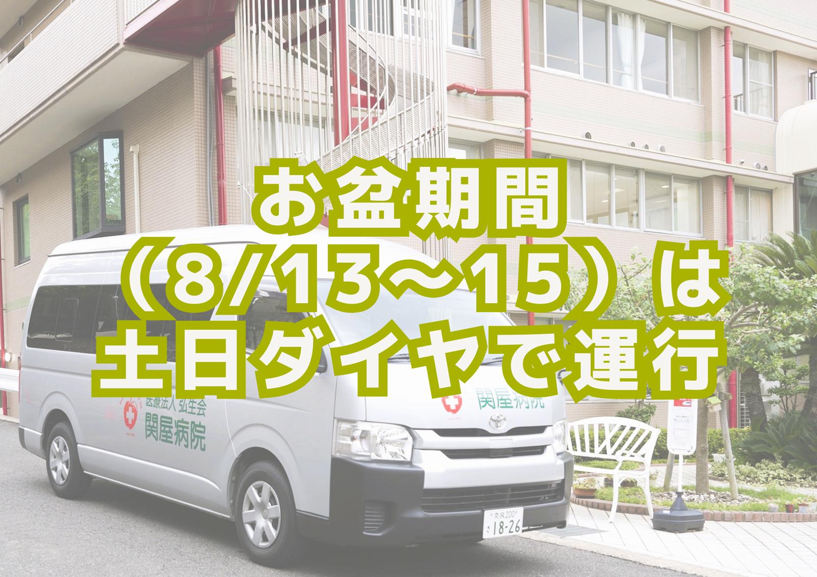 お知らせ新着情報お盆期間中(8/13〜15)の送迎バスは「土日ダイヤ」で運行...