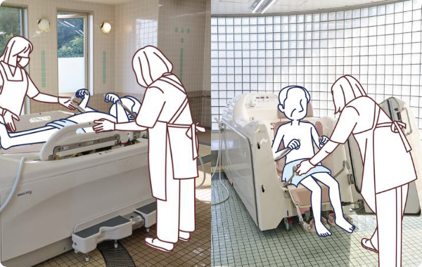 ※左写真がストレッチャー浴、右写真が車椅子浴です。