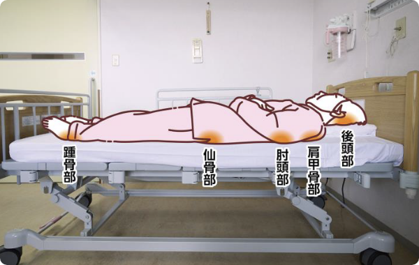 一般的には「床ずれ」ともいわれる褥瘡は、体重で圧迫されている部分の血流が悪くなったり滞ったりすることで、皮膚の一部が赤味を帯びたり、ただれたり、傷ができてしまったりすることです。ほんの数時間でできてしまいますが、一度できたら治るまでに数カ月、長い場合は数年かかってしまうケースもあります。特に、高齢者の場合は日数がかかります。それゆえ、予防が大切です。