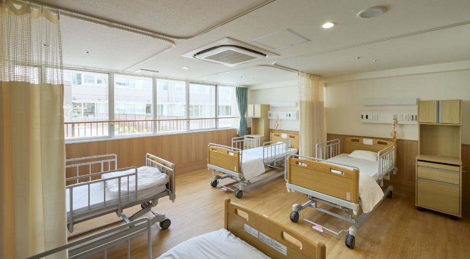 「医」は、文字通り医療のことです。当院には、慢性期のご病状で長期的な療養を必要とされる患者さまが入院されています。また、脳梗塞後の患者さまや指定難病(神経難病)の方、経管栄養や酸素吸入などを必要とされる方、骨折や圧迫骨折後で療養されている方も入院されています。当院では、そのような方々にその人らしくあり続けていただくための医療サービスをご提供します。
