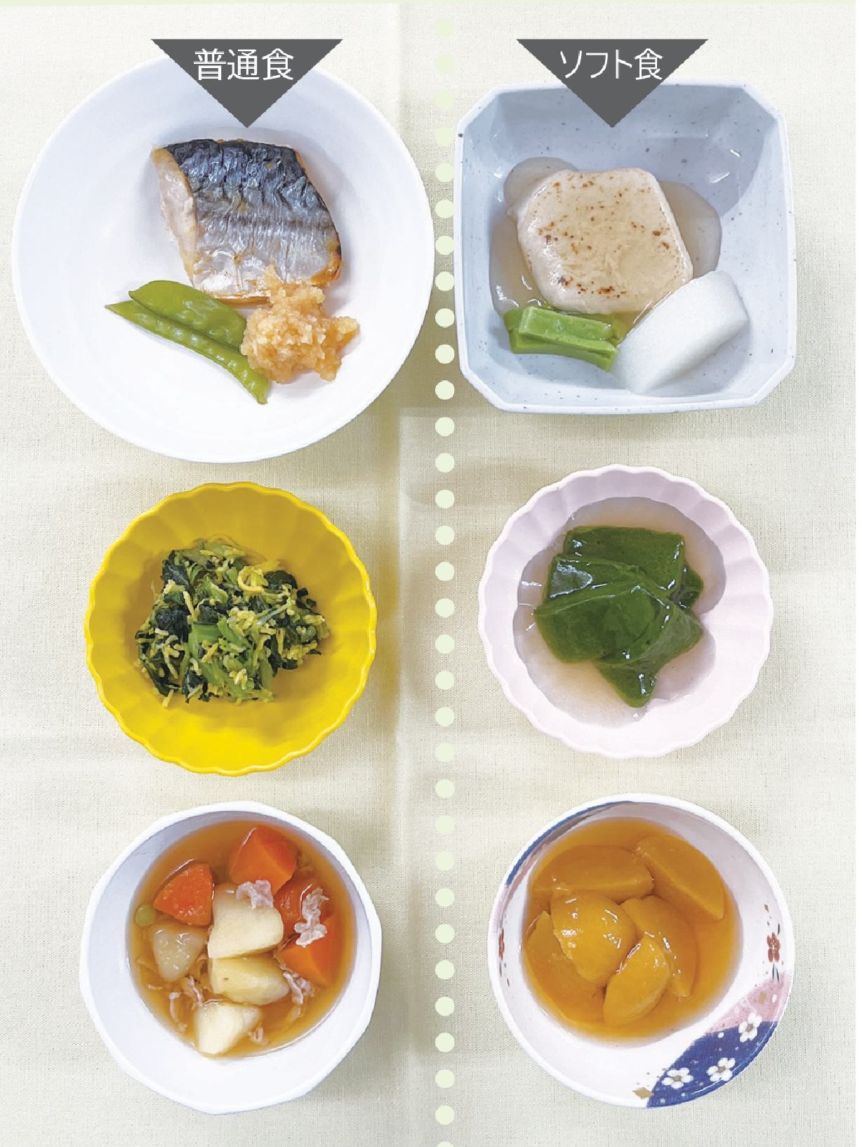 お知らせソフト食とは、歯茎や舌でつぶれるくらい柔らかくした食事のこと...