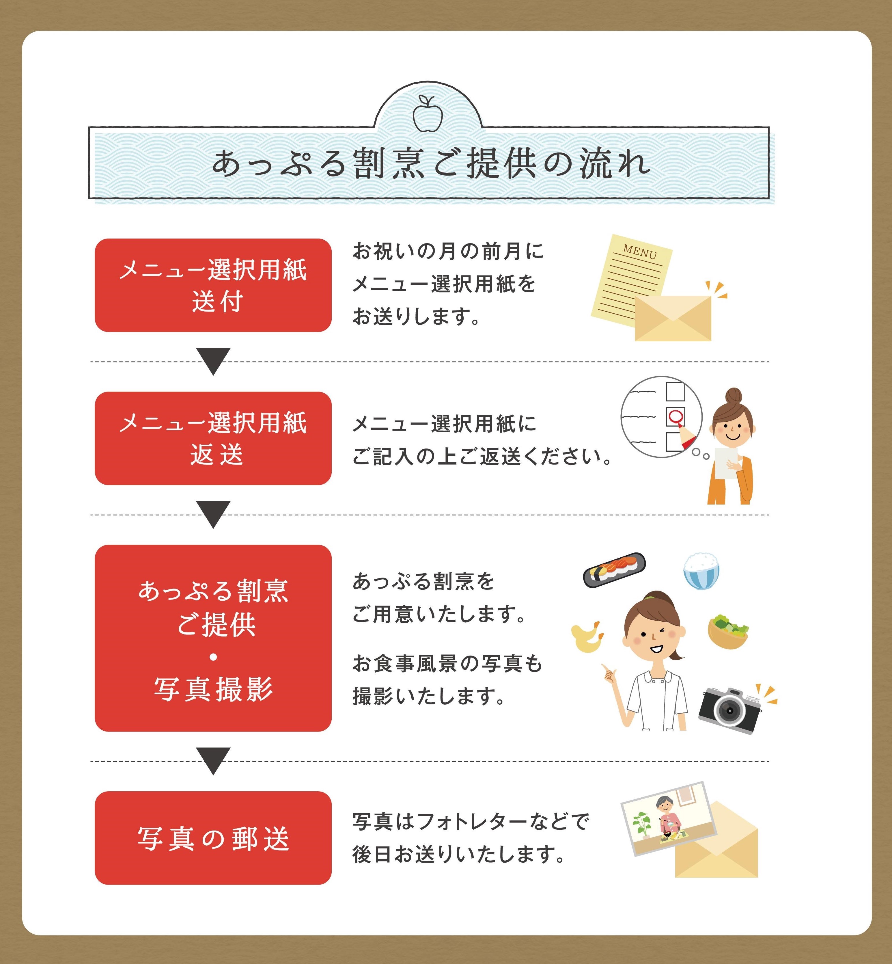 「あっぷる割烹」のご提供の流れをご紹介いたします。