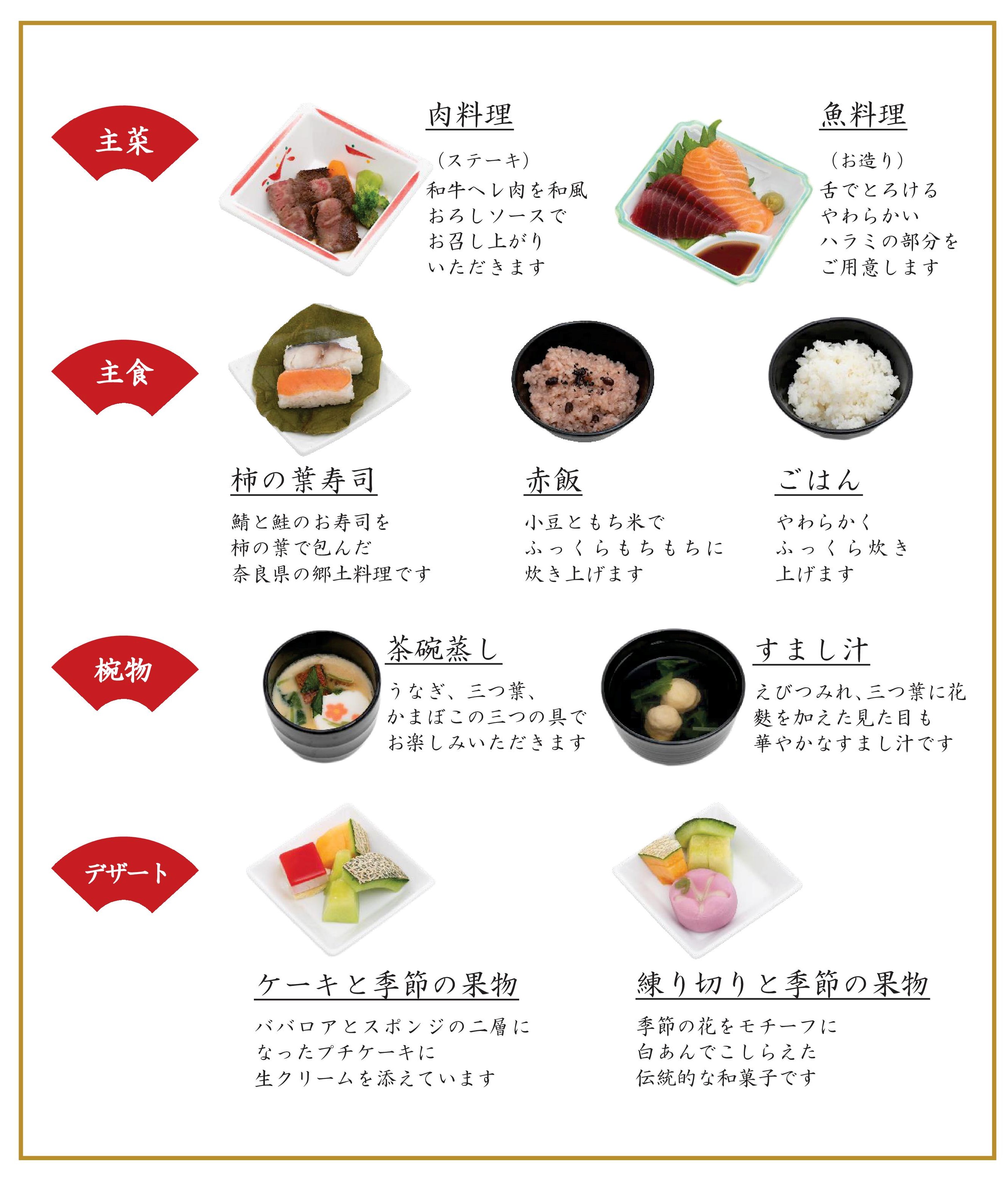 「主食」「主菜」「椀物」「デザート」をお選びいただけます。