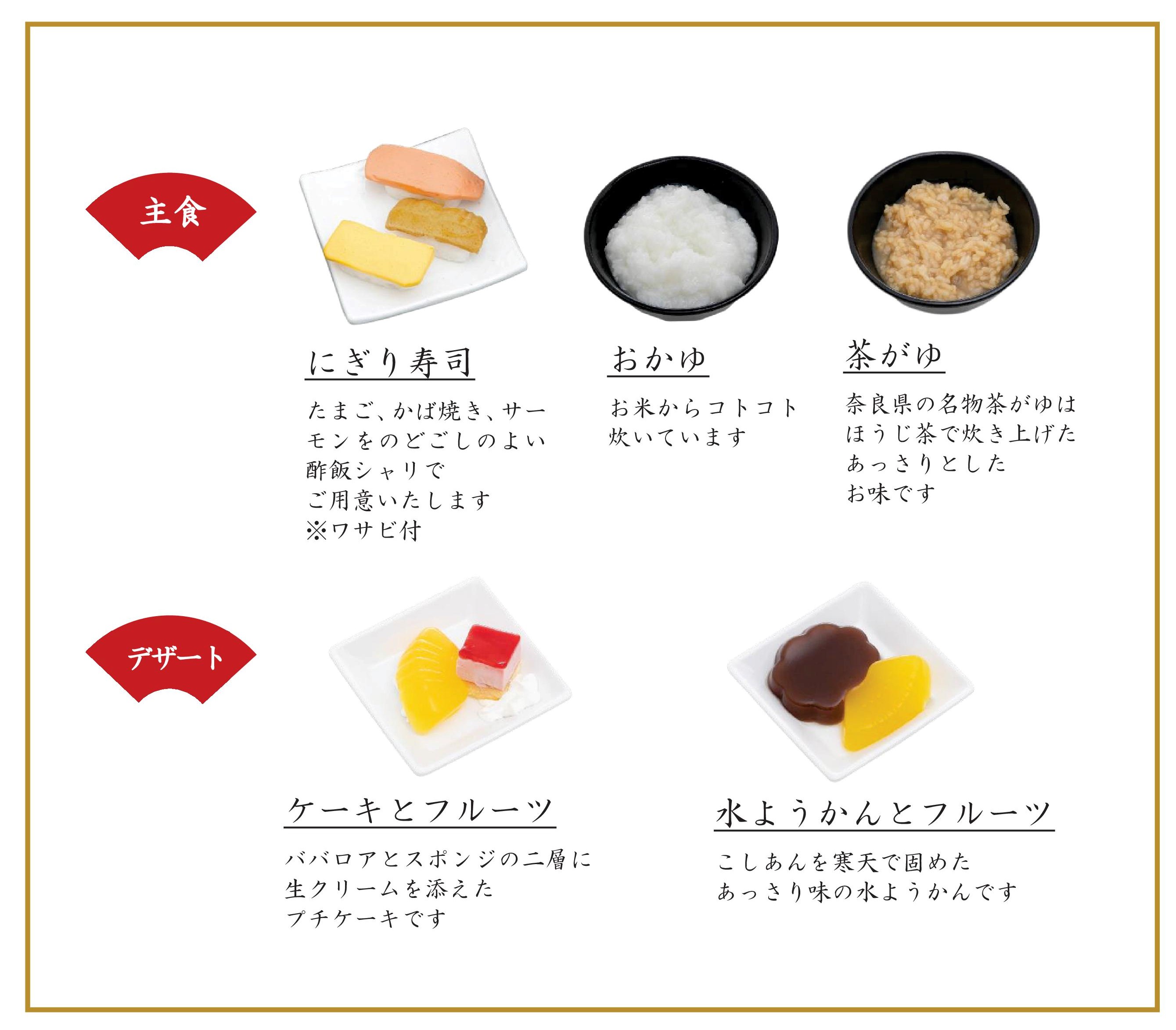 「主食」「デザート」をお選びいただけます。