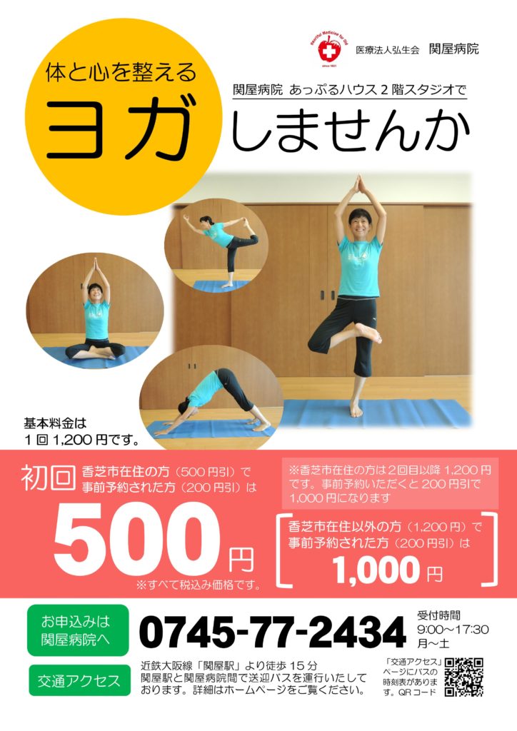 〈申し込み〉0745-77-2434 関屋病院受付まで(月~土 9:00~17:30)