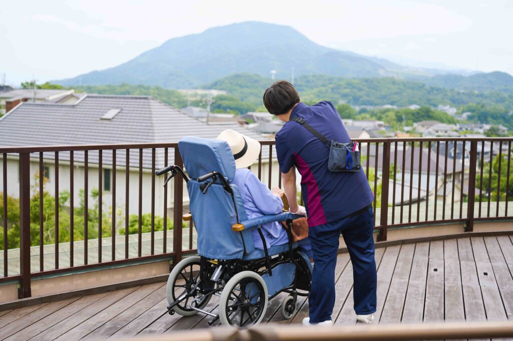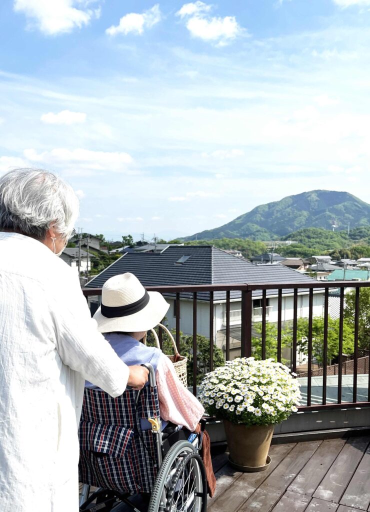 ウッドデッキは二上山が一望でき、四季の風を感じながら関屋の町並みと山々の景色を存分にお楽みいただける特別な空間です。