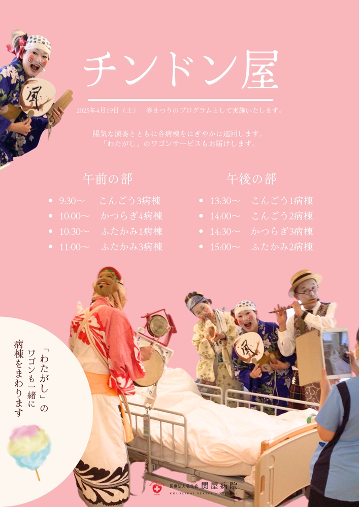 「わたがし」のワゴンサービスも、チンドン屋とともに病棟を巡回いたします。