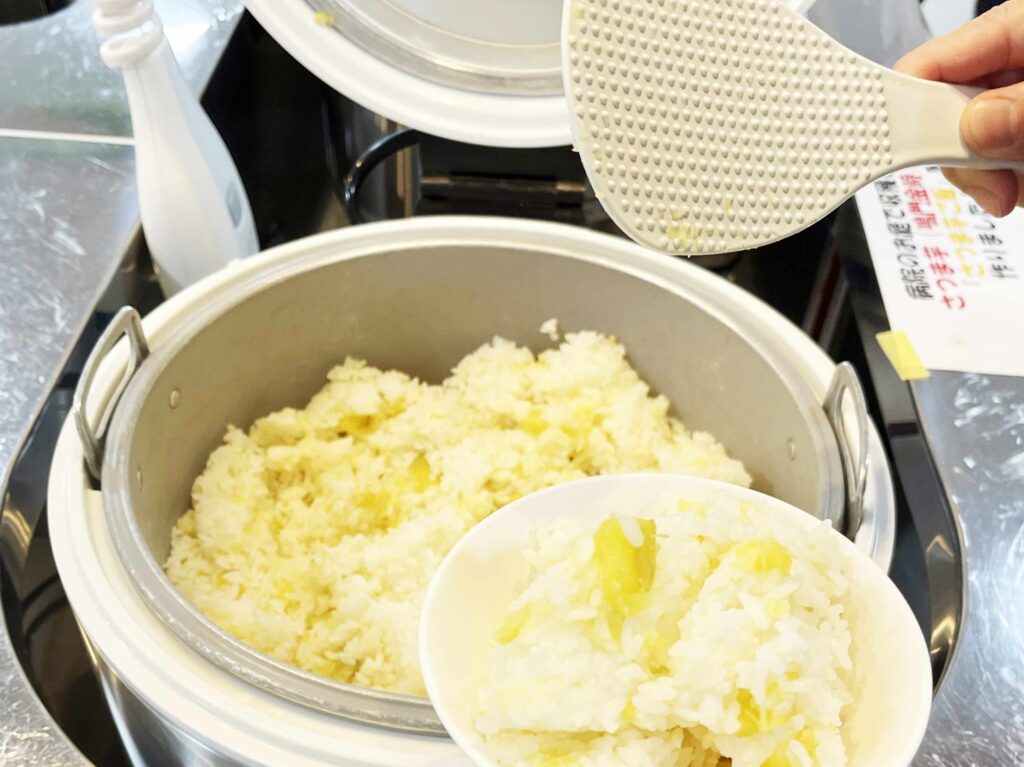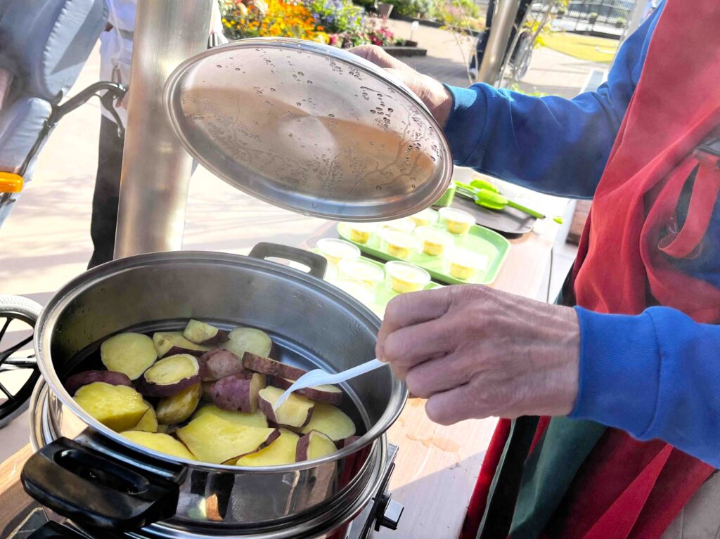 初日は、少し早めに掘ったさつま芋を使い、患者さまの昼食にさつま芋ご飯をご提供しました。