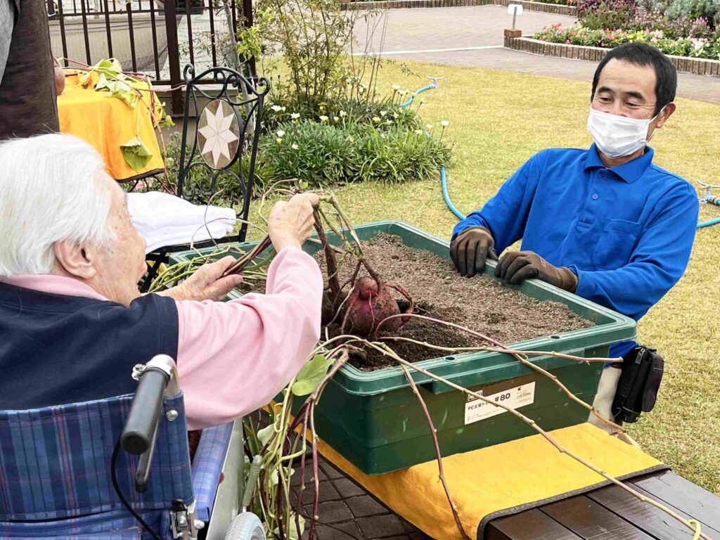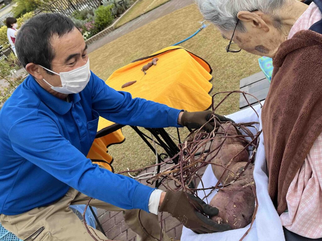 お芋ほりでは、さつま芋が出てくるとともに、患者さまから驚きや笑顔が溢れていました。