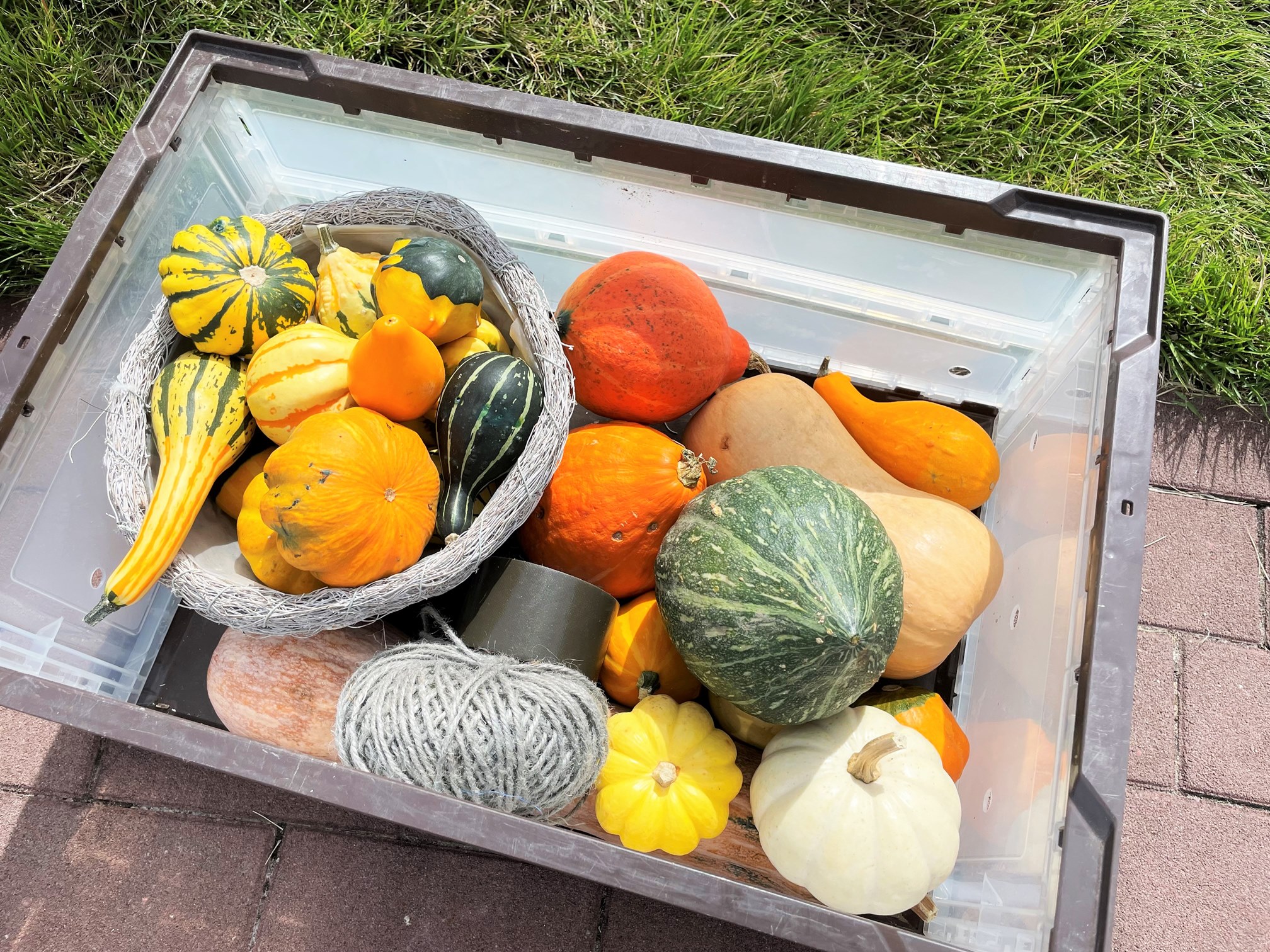 1周約70メートルあるあおぞら庭園の至る所に飾られた「秋の実り」。