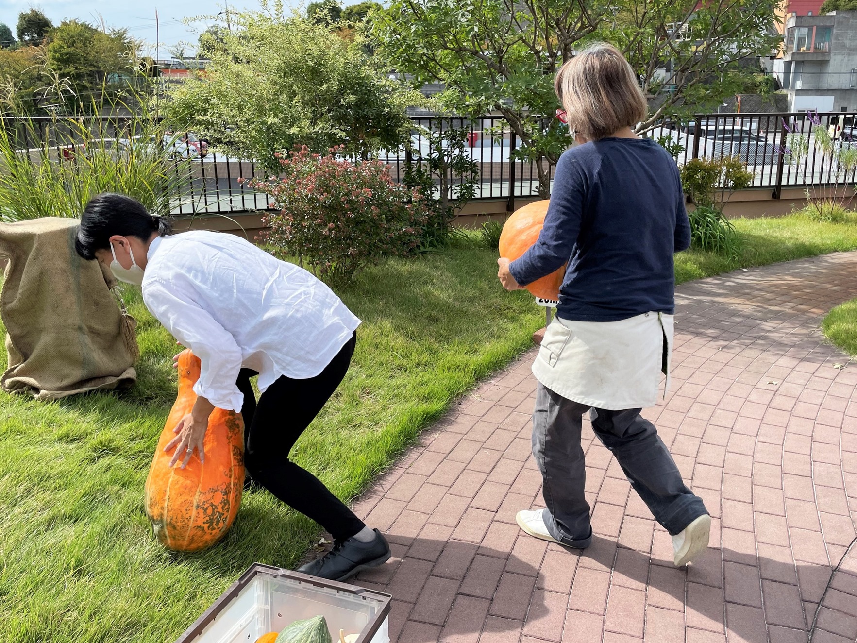小さいものでも幅50㎝ある巨大かぼちゃはかなりの重さ・・・