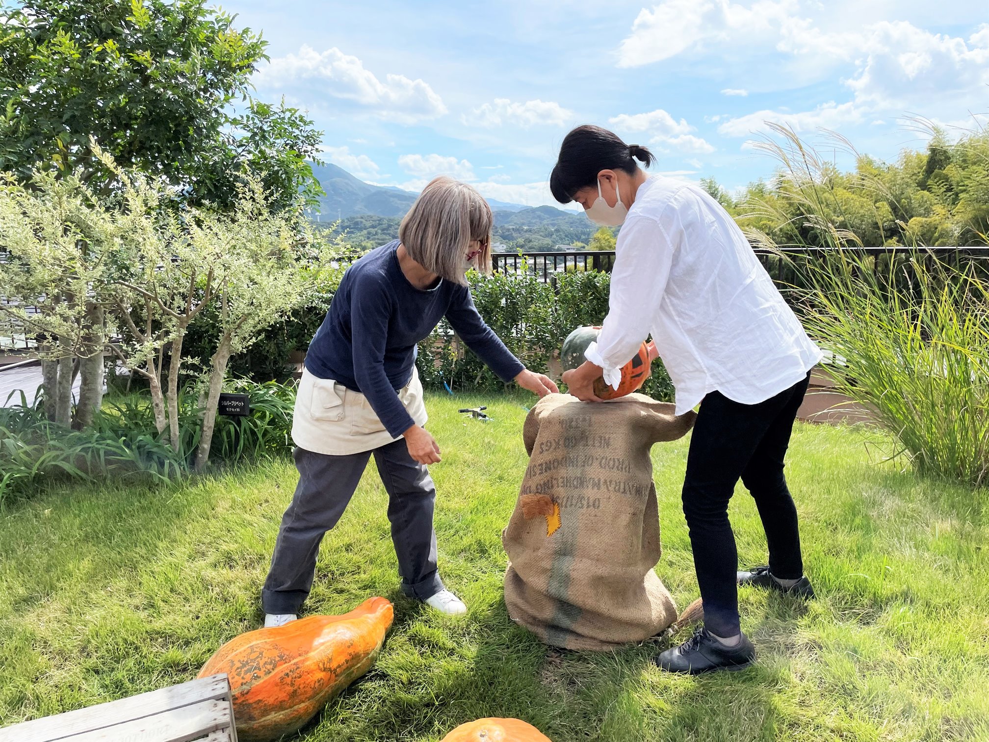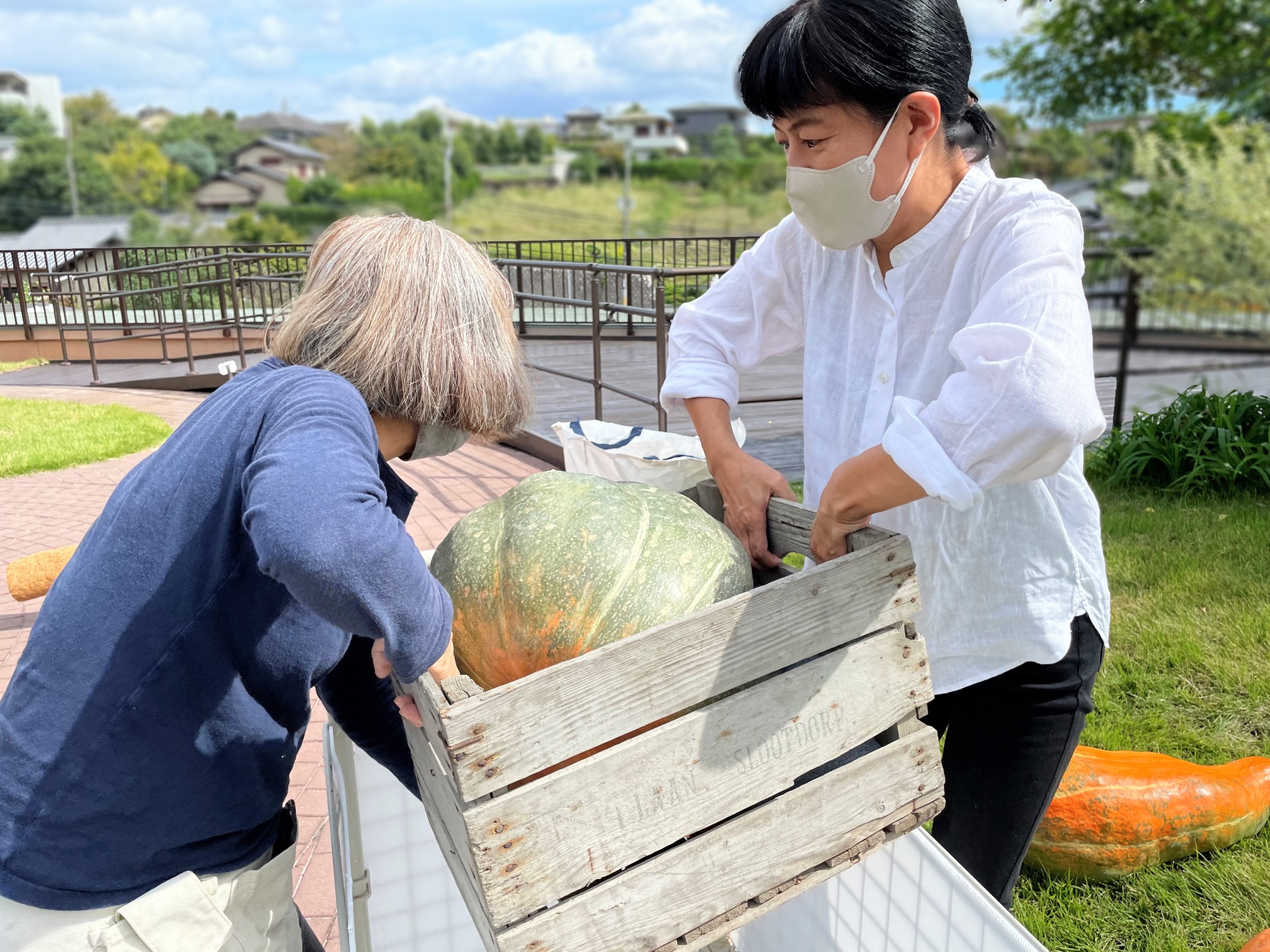巨大かぼちゃは初めてご覧になられたそうで「こんな大きなかぼちゃがあるんやね」と驚かれていました。