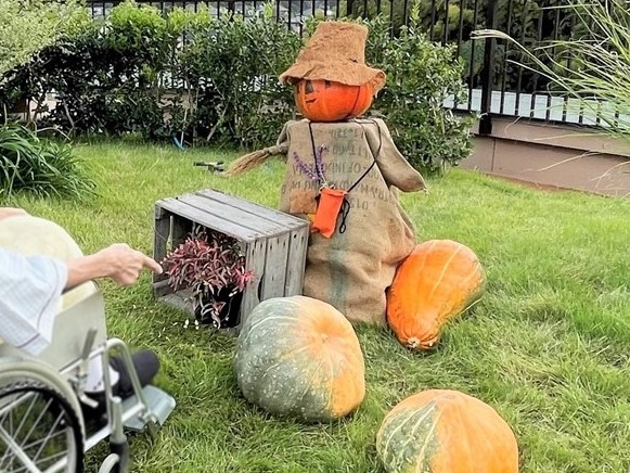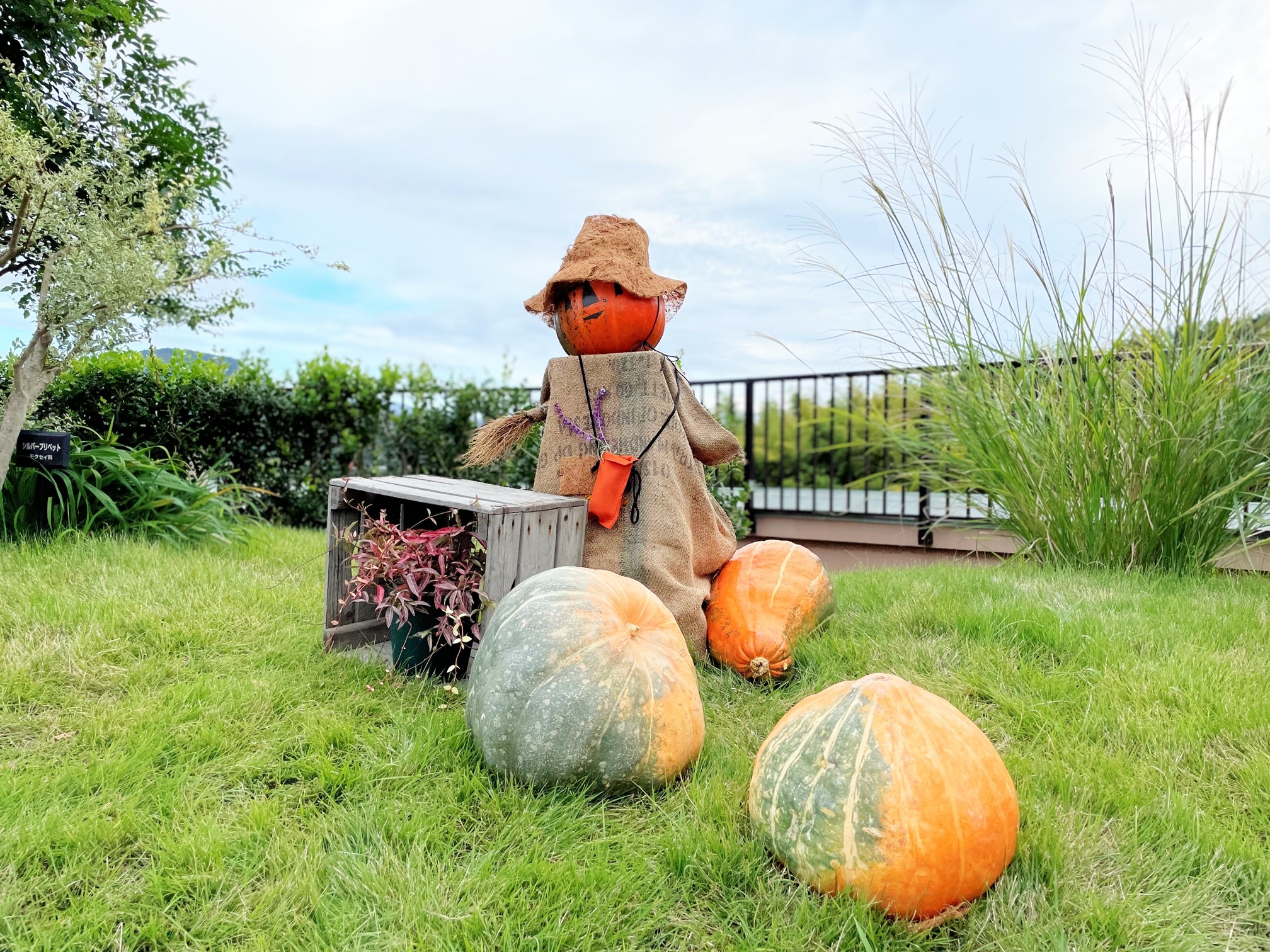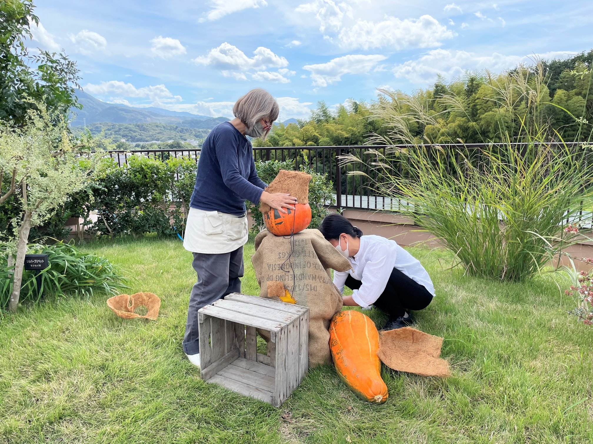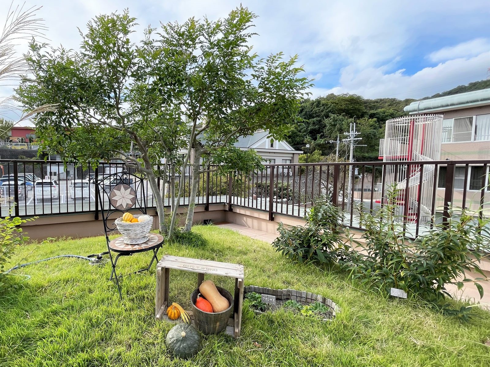 あおぞら庭園(屋上庭園)に秋のディスプレイをしました。