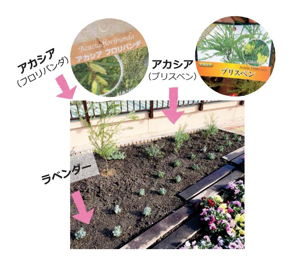 2種類の低木(アカシア)とハーブ(ラベンダー)を植えることになりました。