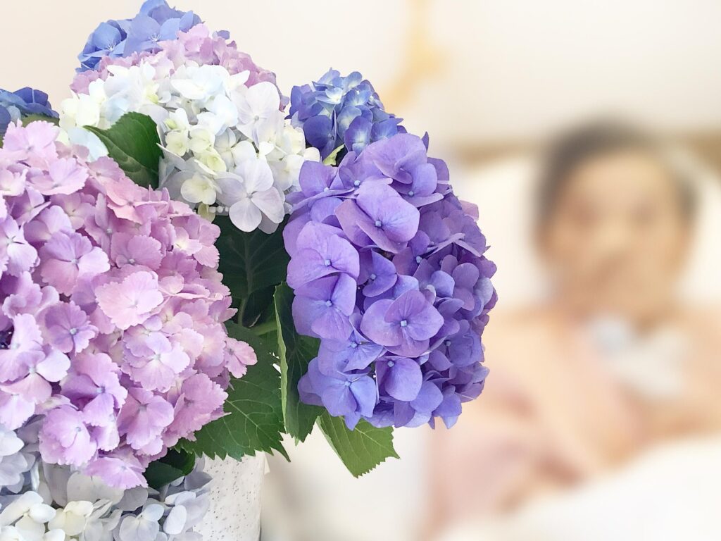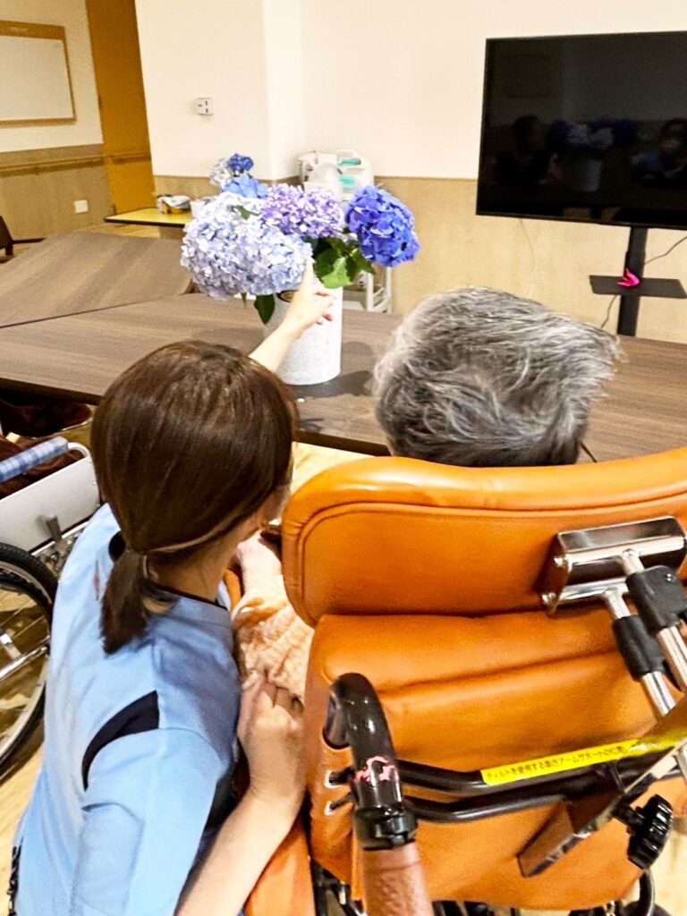 あじさい鑑賞会 ~こんごう3病棟~ 2025.06.26 イベント新着情報 病院の庭園に咲いた色とりどりのあじさいが、患者さまのもとに届きました。 デイルームでは車椅子の方々が花を囲んでゆったりと過ごされ、 病室で療養中の方にも職員が花を運んで、 ひとときの鑑賞を楽しんでいただきました。 「きれいね」「何色が好き?」と、会話が自然と広がるやさしい時間となりました。