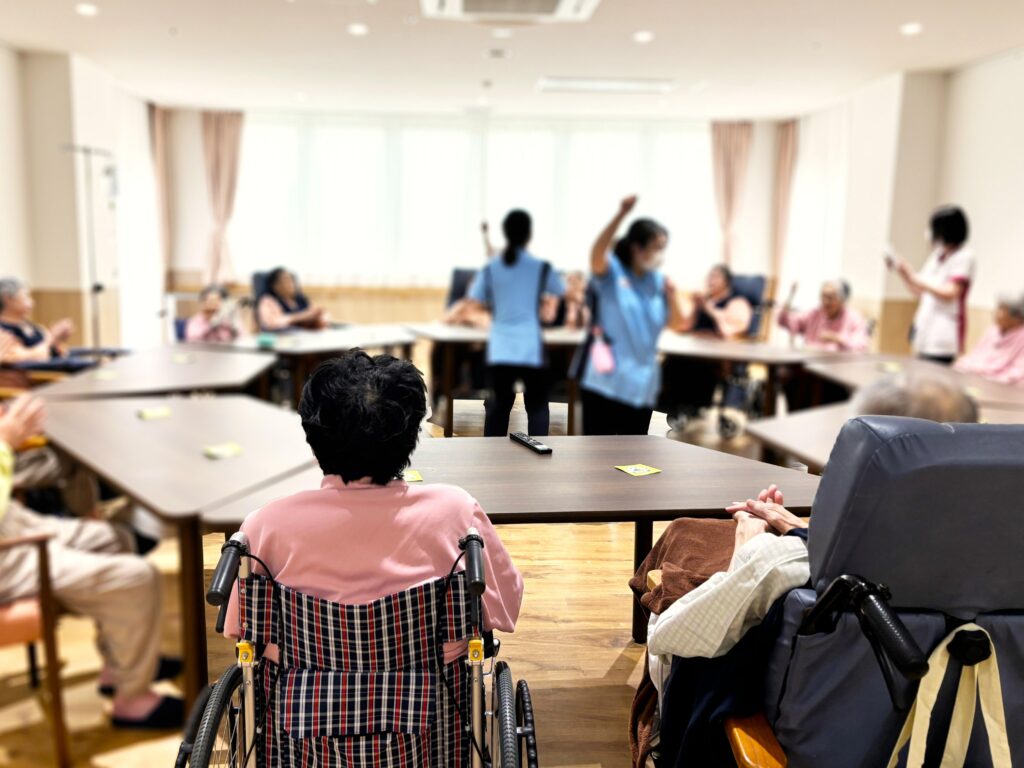 そのあとは、スタッフによる「お茶おいしい」の曲に合わせたダンスで、会が本格的にスタート。患者さまたちは、にこやかな雰囲気の中、ゆったりとしたひとときを過ごされました。