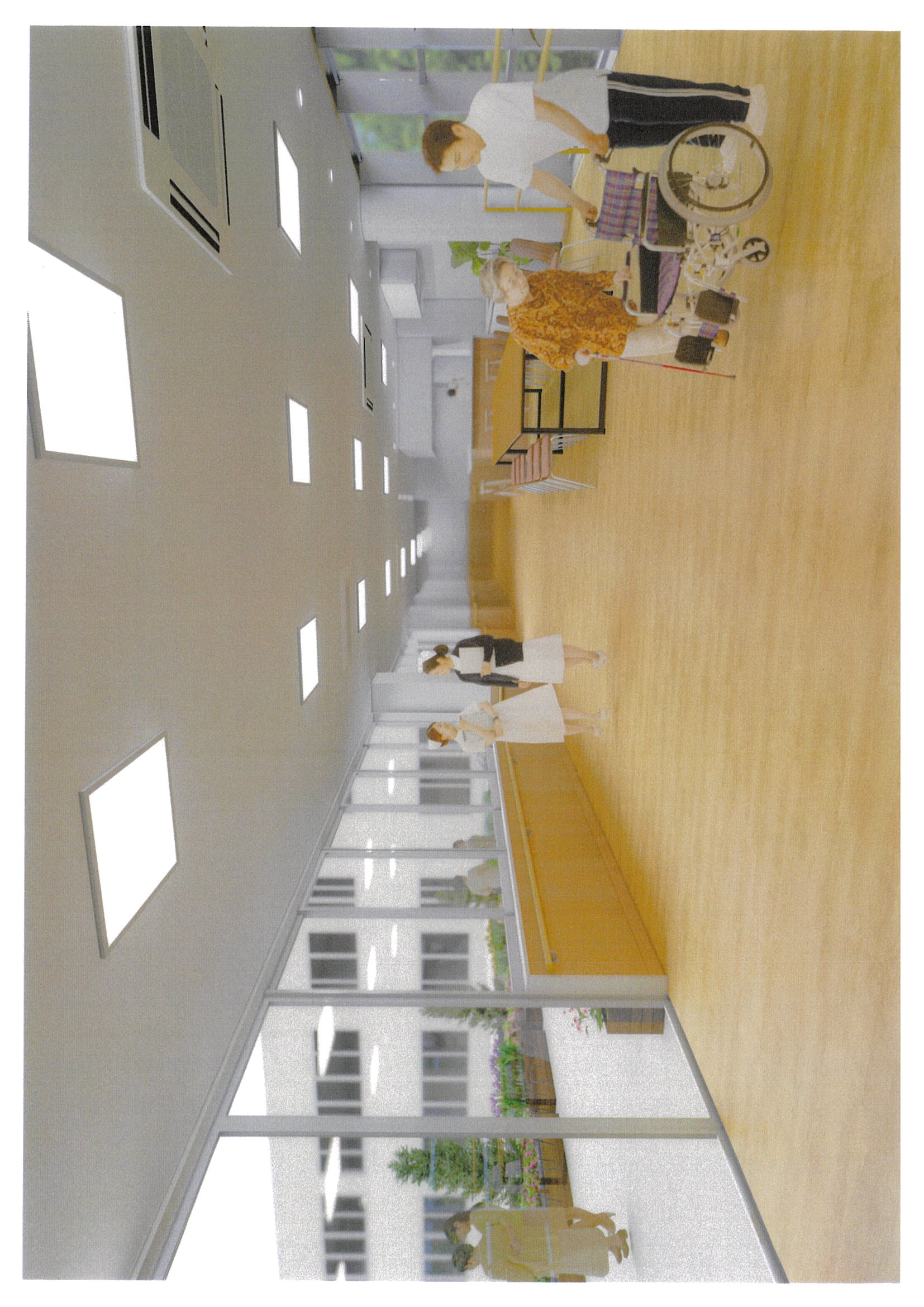 かつらぎ棟改修後のイメージ 2023.03.20 お知らせ 現在、かつらぎ棟北側の改修工事を行っており、北側完成後の4月から、かつらぎ棟南側の改修工事が始まります。 北側と南側をつなぐ場所は「デイルーム兼リハビリスペース」になります。 広いスペースでゆったりと、くつろいでいただける場所になる予定です。