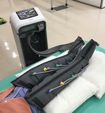 こちらの機器はメドマーといいます。主に、静脈血液の流れの改善やむくみの除去や筋肉の疲労回復を目的として使用しています。最近は家電量販店でも小型機は見かけるようになりましたが、当院で使用しているものは大型で細かな設定が行えます。座ったままだけでなく、寝たままでも使用することができ、あまりの気持ちよさに寝てしまう方がたくさんおられます。