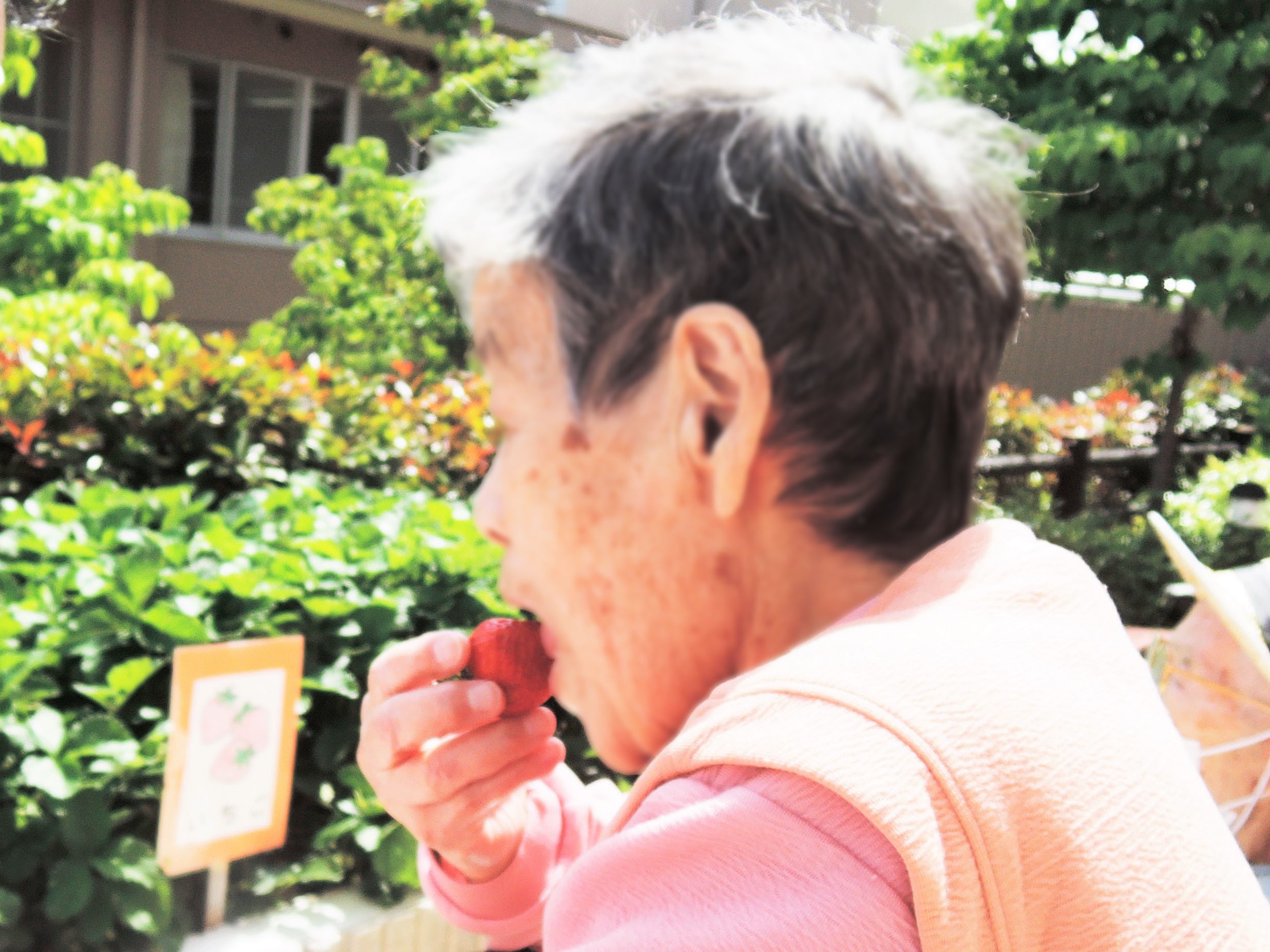 イチゴ摘みをしました ~こんごう棟1階~ 2021.05.20 お知らせ 当院の庭園情報を、グリーンホスピタルプロジェクトメンバーの環境管理室スタッフがお届けいたします。 ハナミズキガーデン(こんごう棟中庭)に患者さまが集まってくださいました。 摘んだイチゴをその場でお召し上がりいただくと、 「甘くておいしいわぁ」と笑顔で味わっておられました。