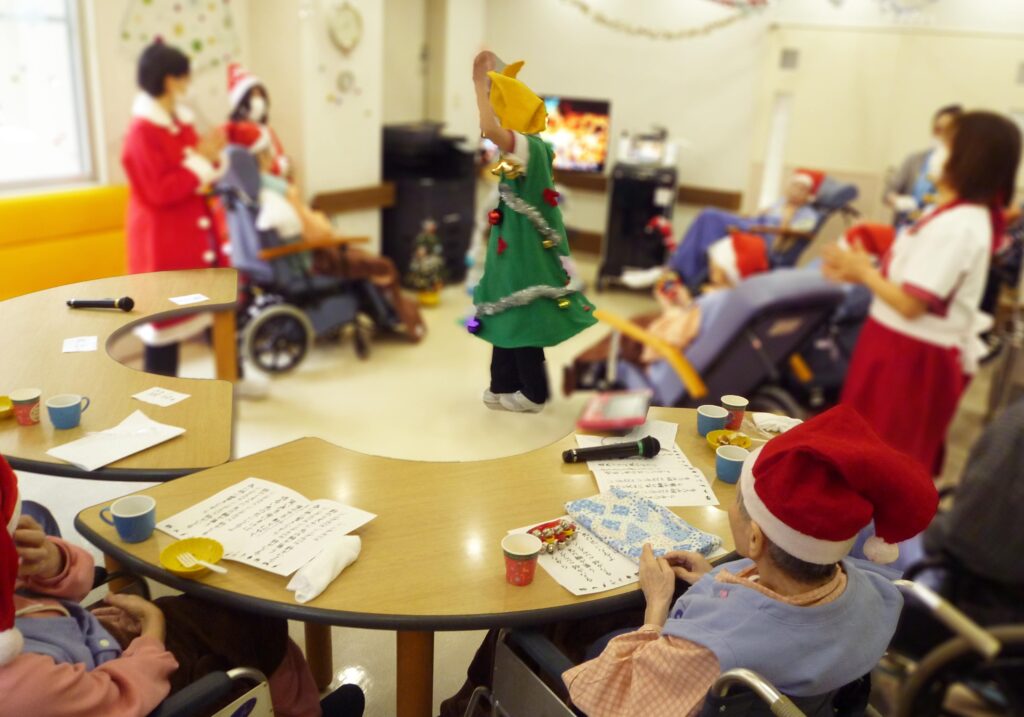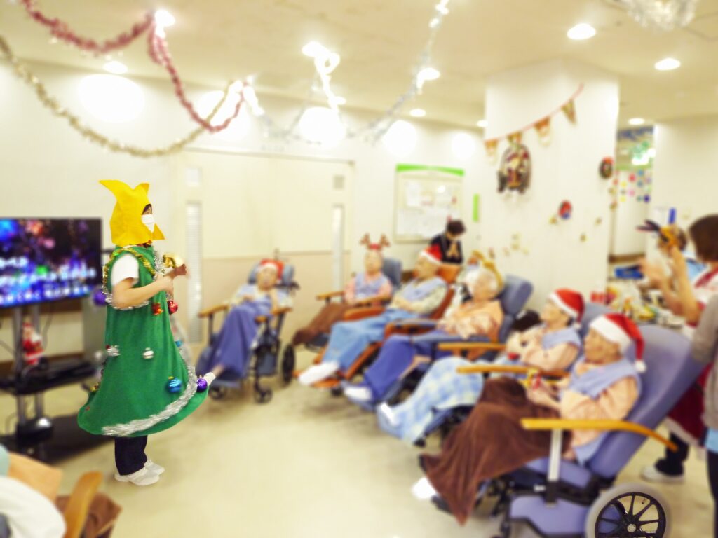 患者さまと、ジングルベルやきよしこの夜などクリスマスソングを合唱しました。