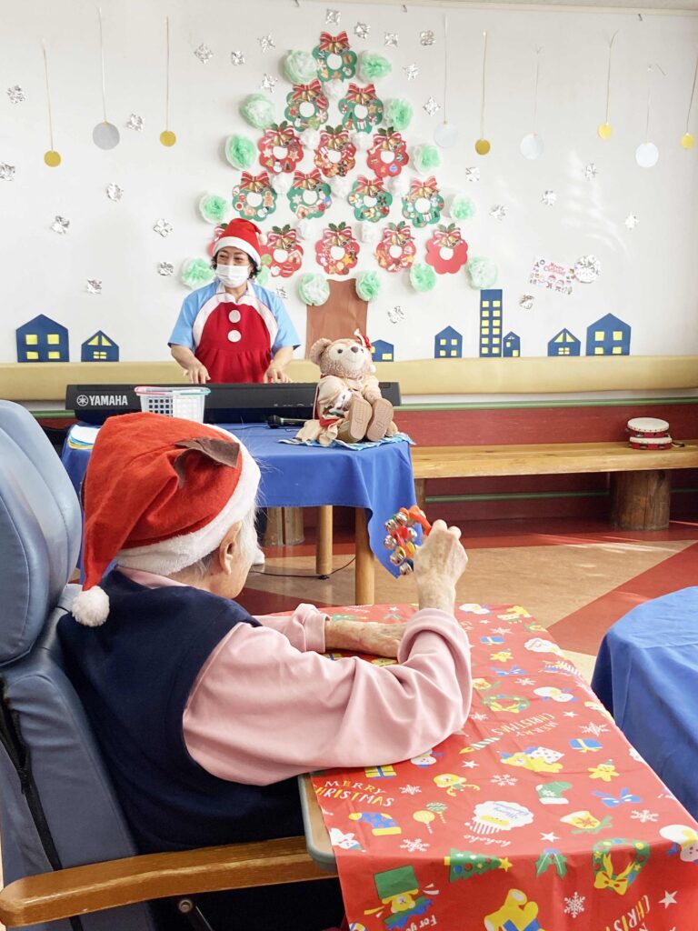 続くスタッフによるクリスマスソングの生演奏では、患者さまも楽器を手に取り、一緒に演奏を楽しみ、病棟全体がクリスマスムードに染まりました。