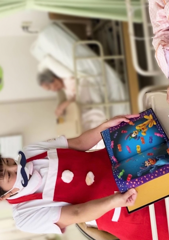 患者さまのベッドサイドでサンタと一緒にクリスマスソングを歌いました。