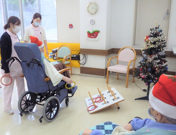 輪投げや風船バレーに参加された患者さまの中で、手を動かすことが難しい患者さまがクリスマスイベントの賑わいでご自分から手を動かして参加されたといううれしい出来事もありました。