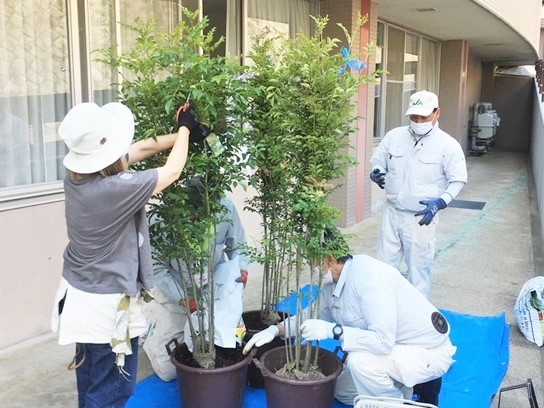 患者さまのご利用しやすい場所をめざし、定期的に打ち合わせをして、植栽や維持管理を行っています。