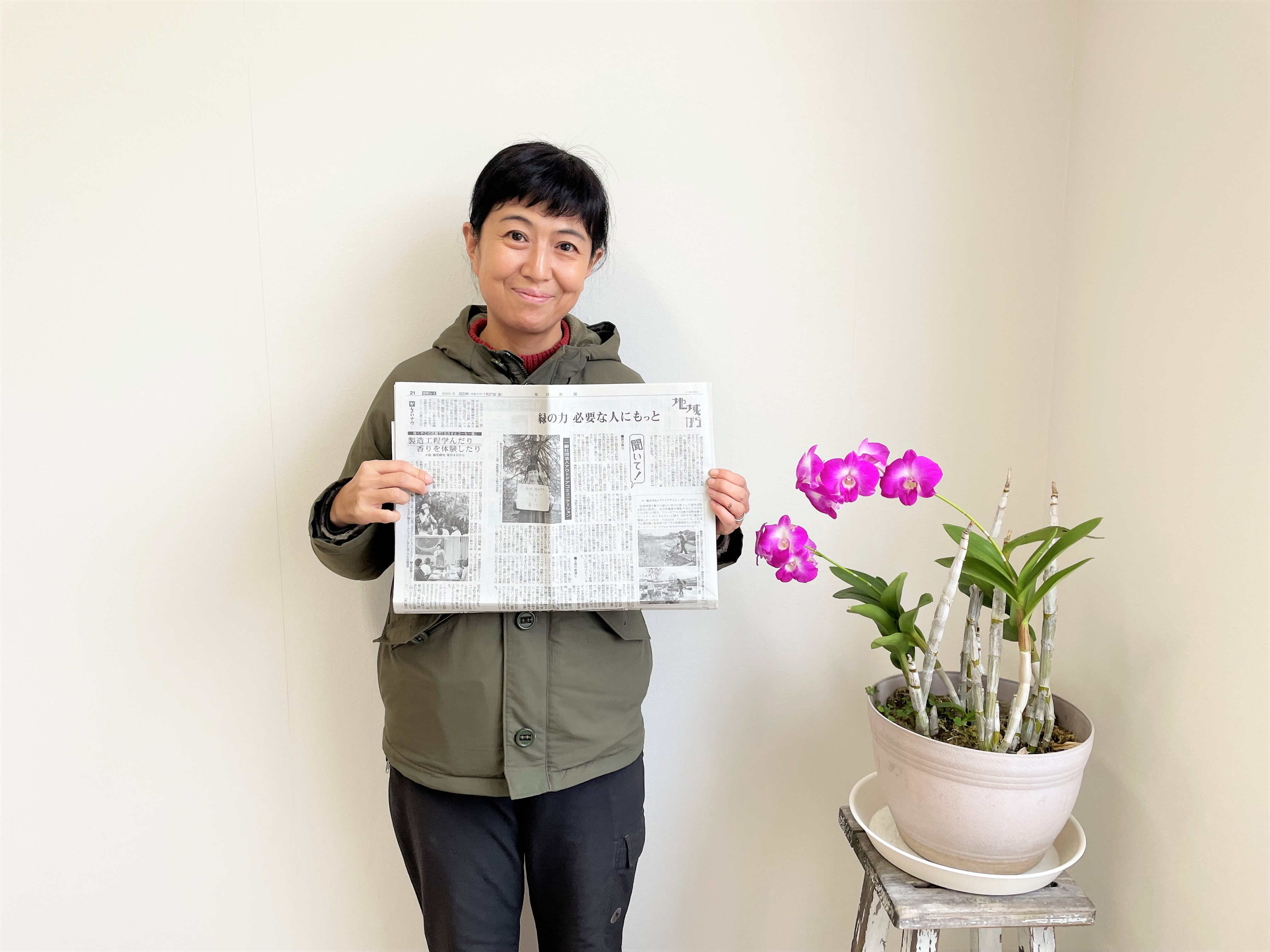 記事の主役は当院に緑の専門家としてご訪問いただいているグリーンホスピタルプロジェクトメンバーの珠数さん。