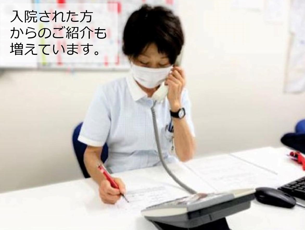 よりよい療養生活をお送りいただくためには、地域の医療機関や施設との連携がとても重要なので、これからも関係機関との連絡を密にとって、安心してご入院いただけるよう努めてまいります。