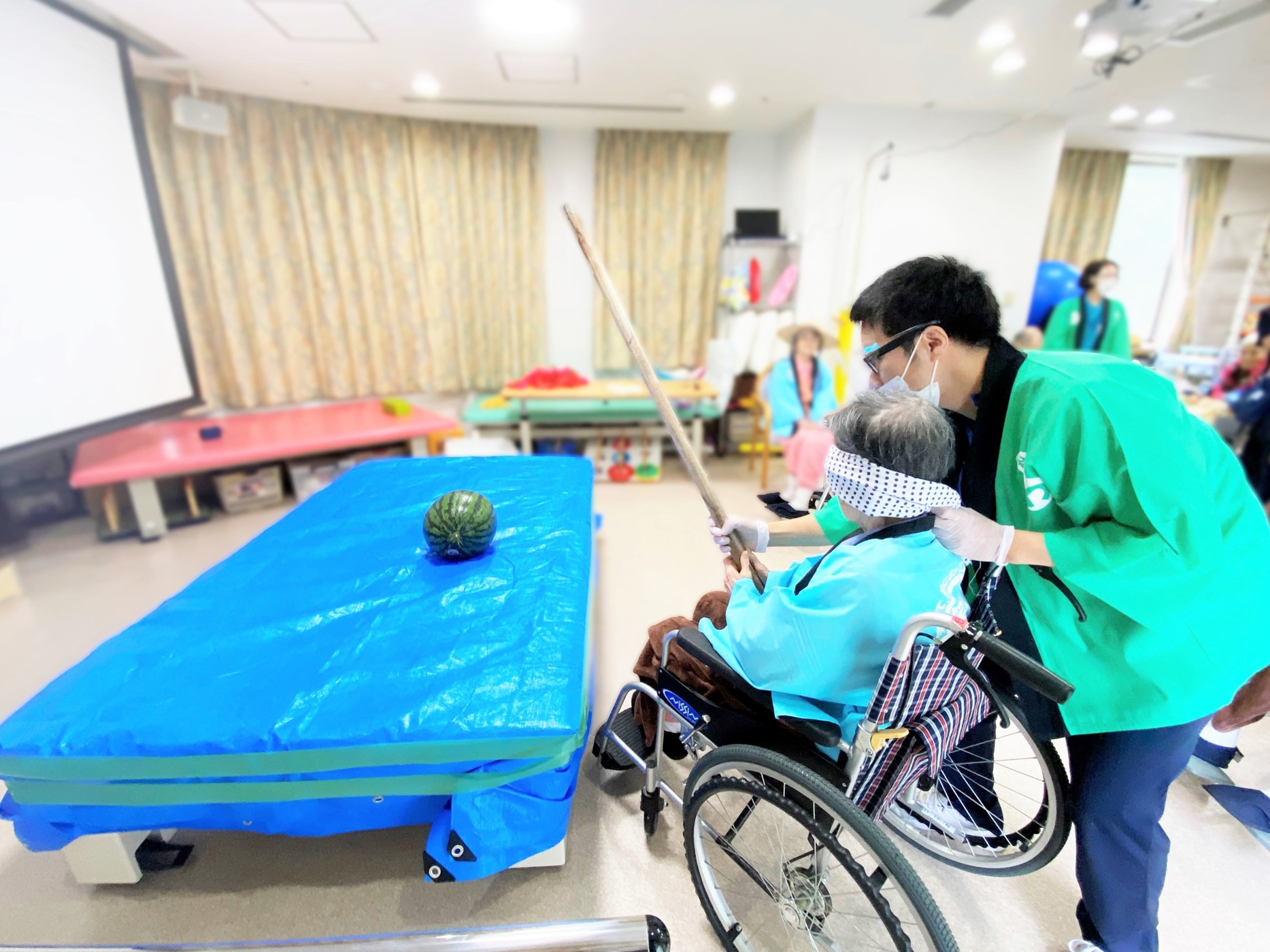 目隠しをされた患者さまが、スイカ割りに挑戦です。