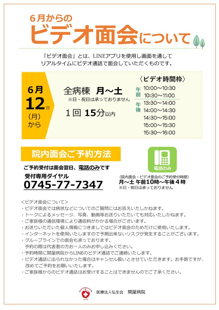 ビデオ面会の予約受付内容を、一部変更いたします。