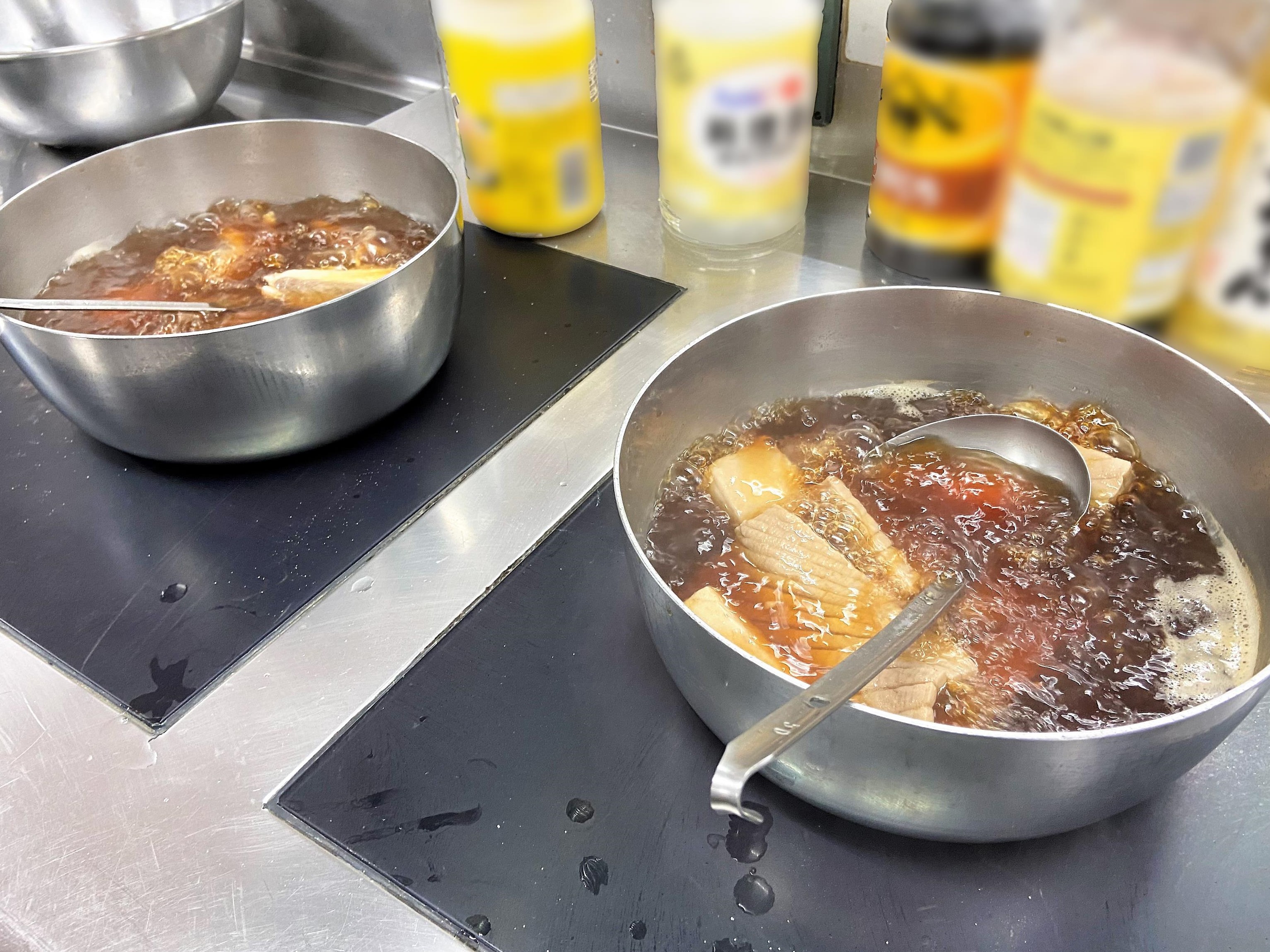 今回のメインは魚料理。お刺身用の魚2種類を別々に甘辛く少し濃いめの味付けで煮て、