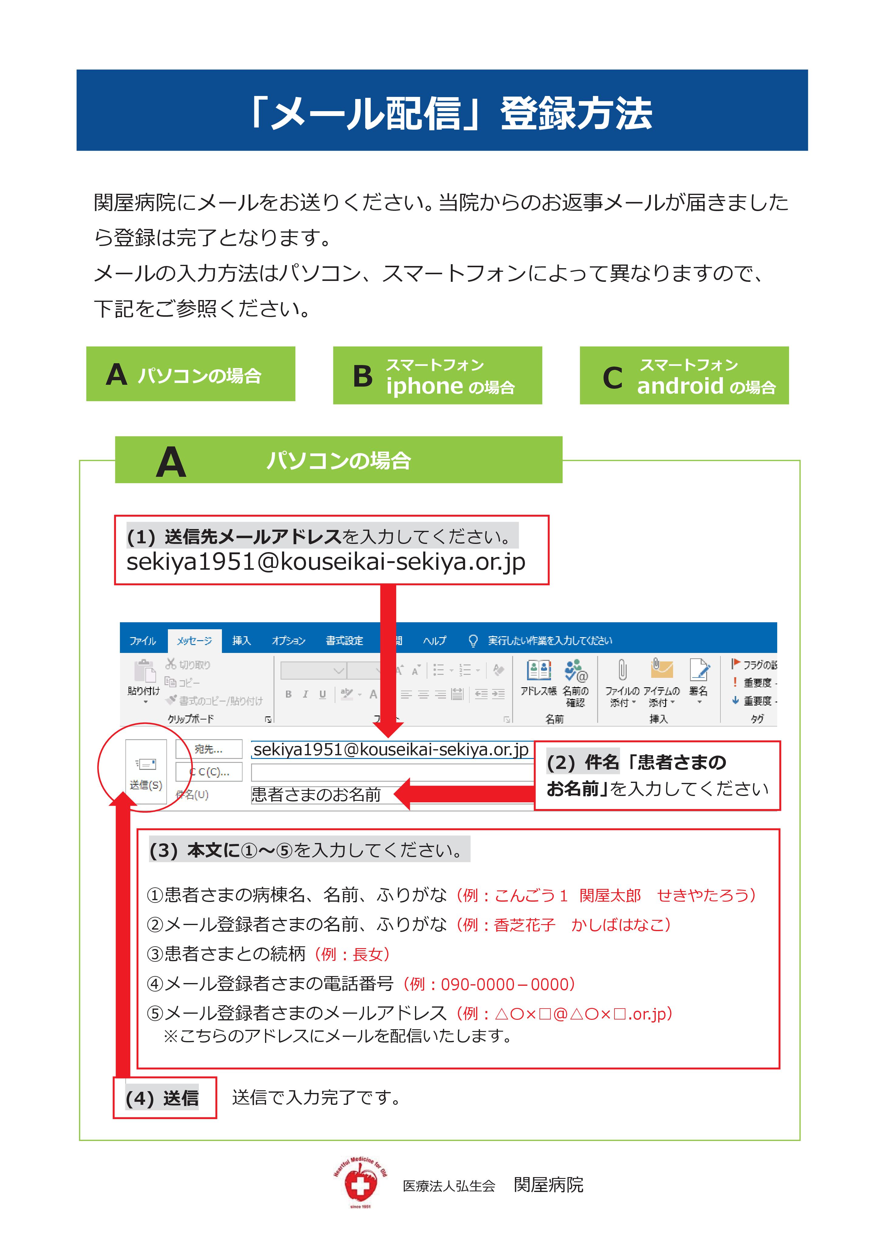 つきましては、お手数ですが別紙「メールの登録方法」をご確認の上、メールアドレスのご登録をお願いいたします。