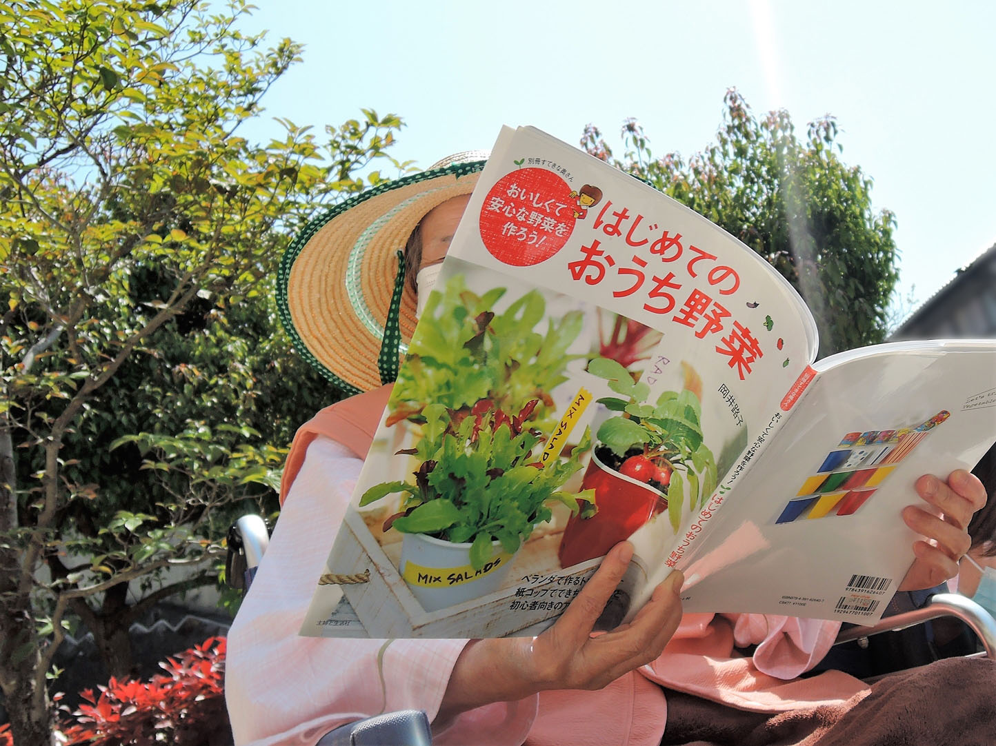 『おうち野菜』の本を持参される患者さまもおられ、今日の収穫を楽しみに待ってくださっていたようです。