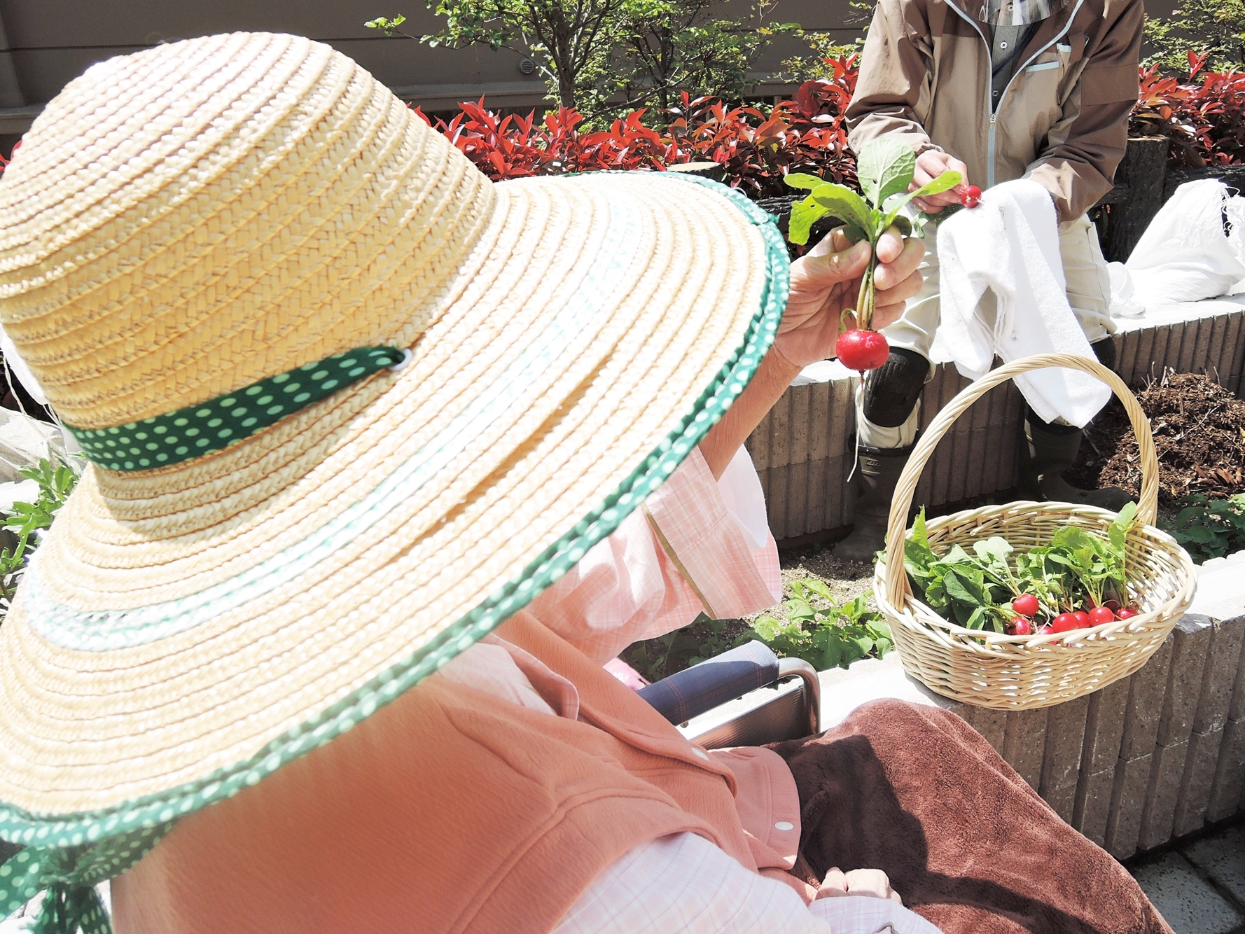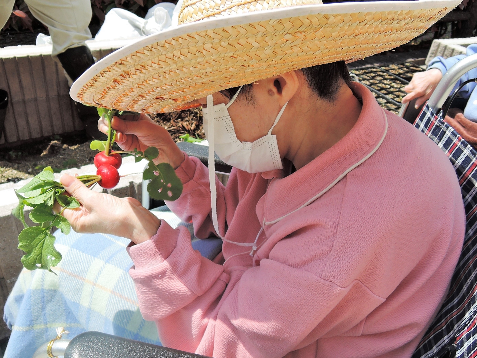 収穫したラディッシュは翌日、昼食の一品として患者さまにお召し上がりいただきました。