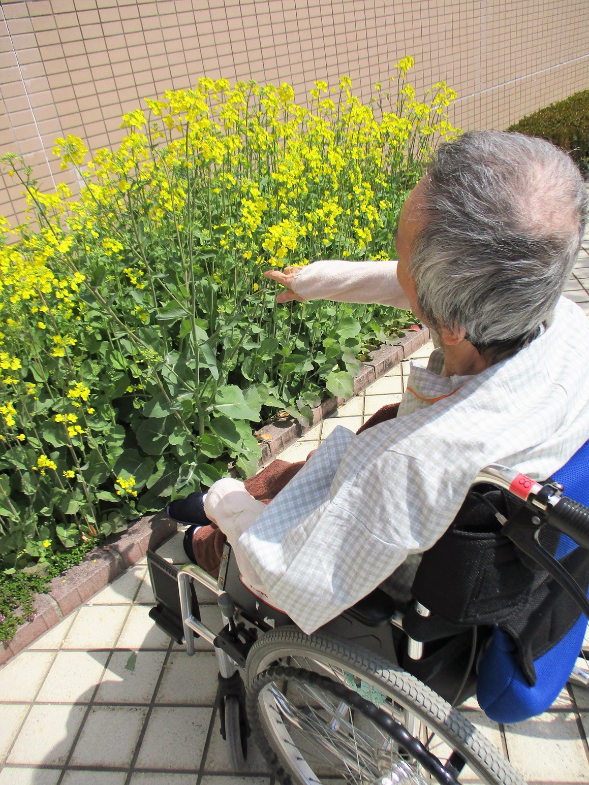 暖かい日が増え、リハビリでは屋外に出ることが多くなりました。