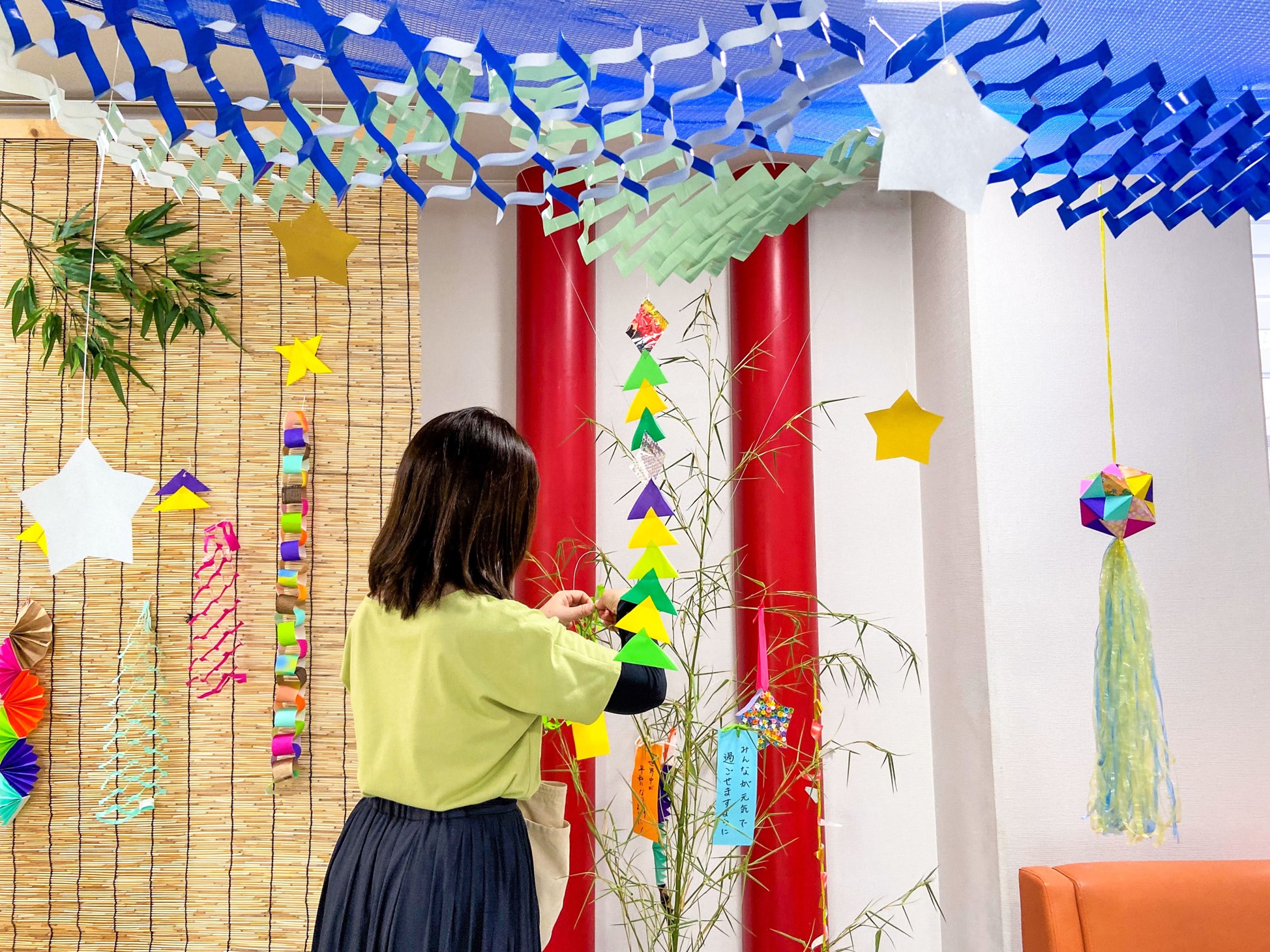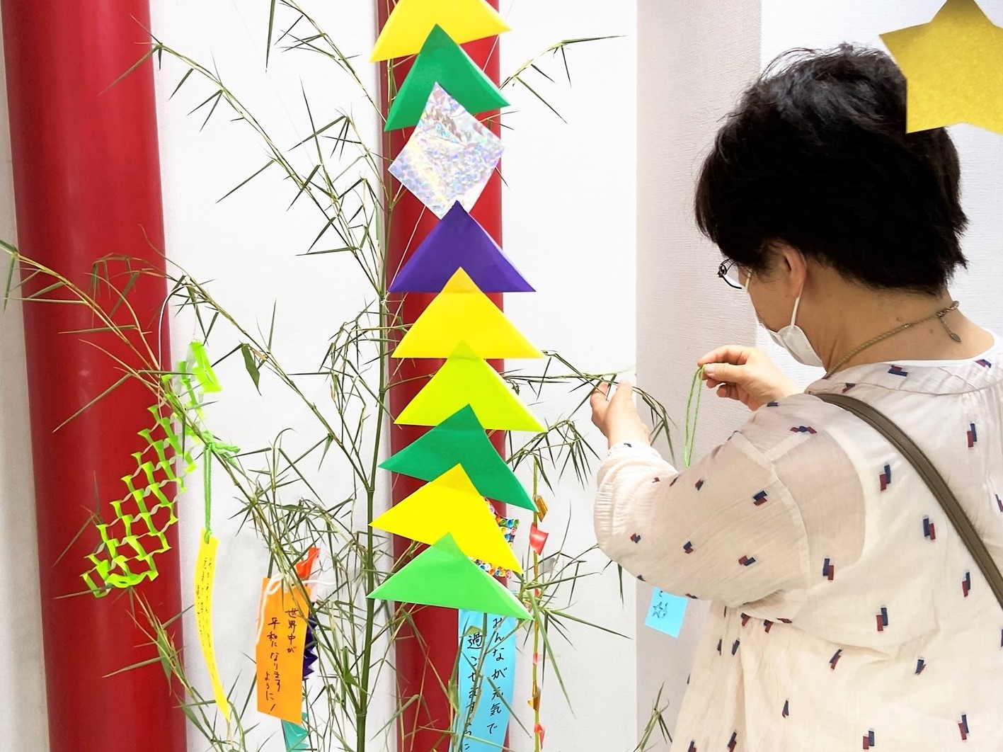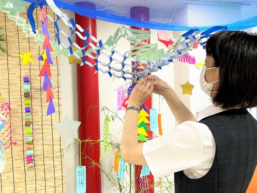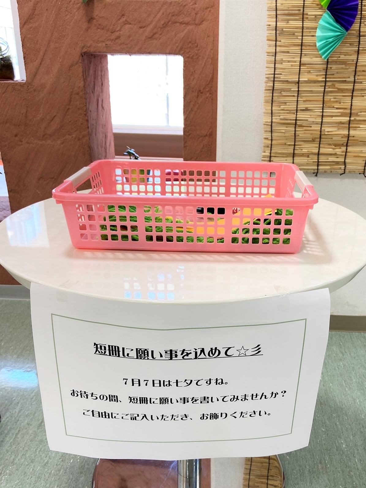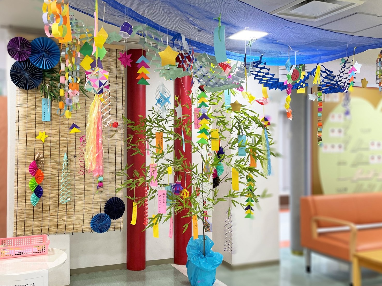 七夕 ~短冊に願いをこめて~ 2022.07.07 お知らせ 七夕の日に向けて、病棟や玄関など院内各所に笹を飾りました。 玄関の笹には、5月から再開している院内面会にお越しのご家族さまに願い事をお書きいただいた短冊を吊るしました。 多くのご家族さまが願い事を書いてくだり、7月7日の七夕の日には玄関がこんなに華やかに。 今年は、ご家族さまとともに七夕を迎えるという私たちスタッフの願いが叶いました。 皆さまの願いが叶いますように。