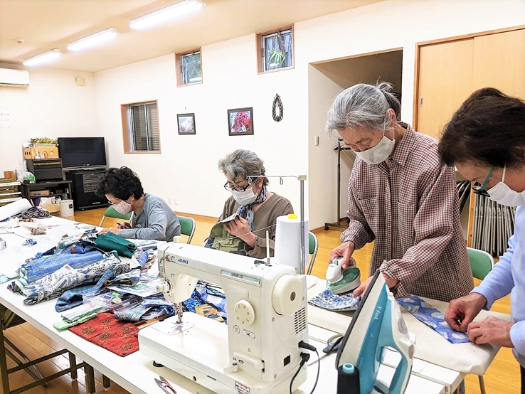 写真に写っているのは関屋桜が丘の手芸がお好きな6名で結成された「すみれ会」の皆さま。