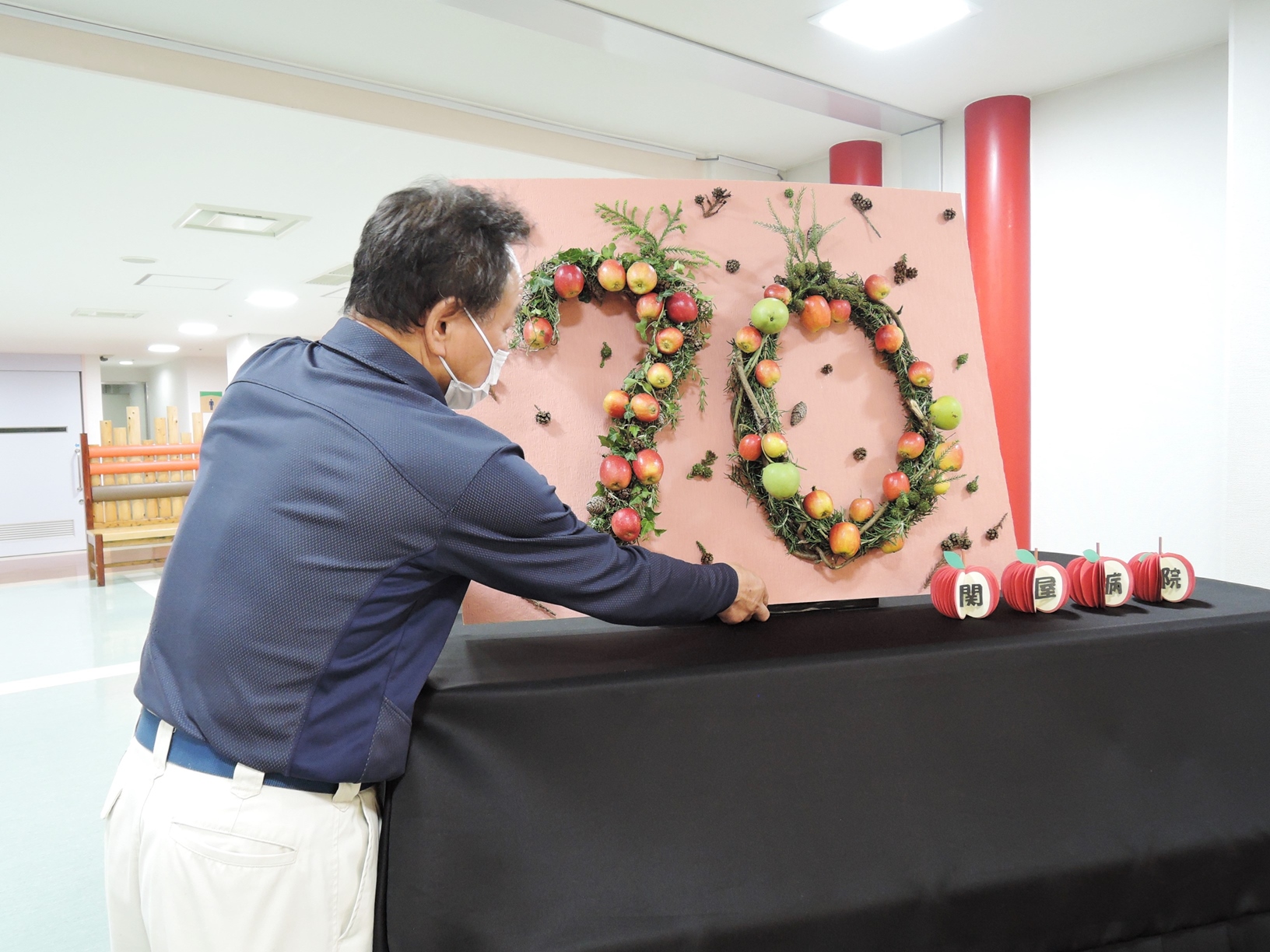 さぁ、完成した姫りんごの記念オブジェを飾りましょう。