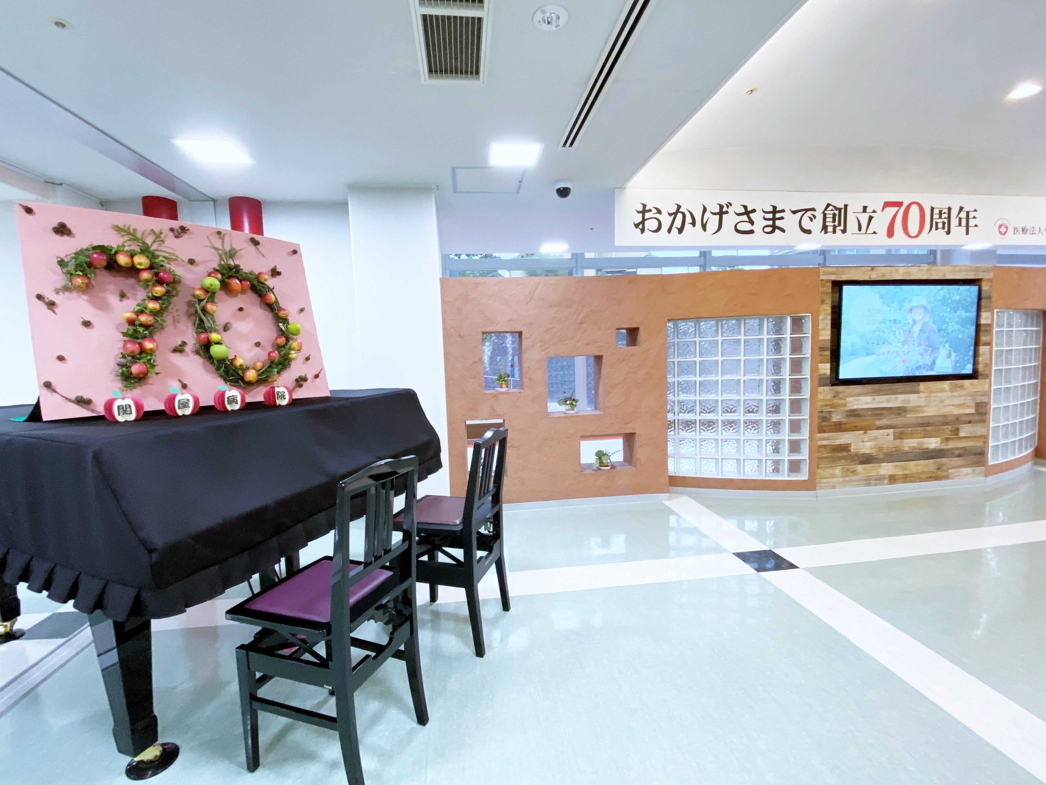 オブジェは、病院玄関を入ってよく見えるピアノの上に飾っています。