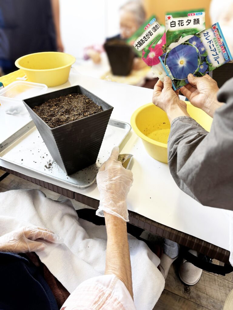 そんな声が飛び交う中、皆さんそれぞれに好きなお花を選んで、種をまいていきました。
