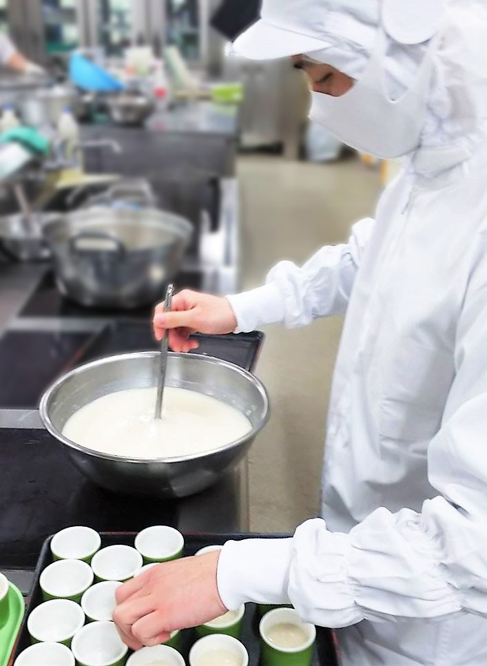 プリン食の方にも、お正月らしさを味わっていただくために、栄養価の高いプリンに苺ソースで「寿」の文字をデコレーションしました。