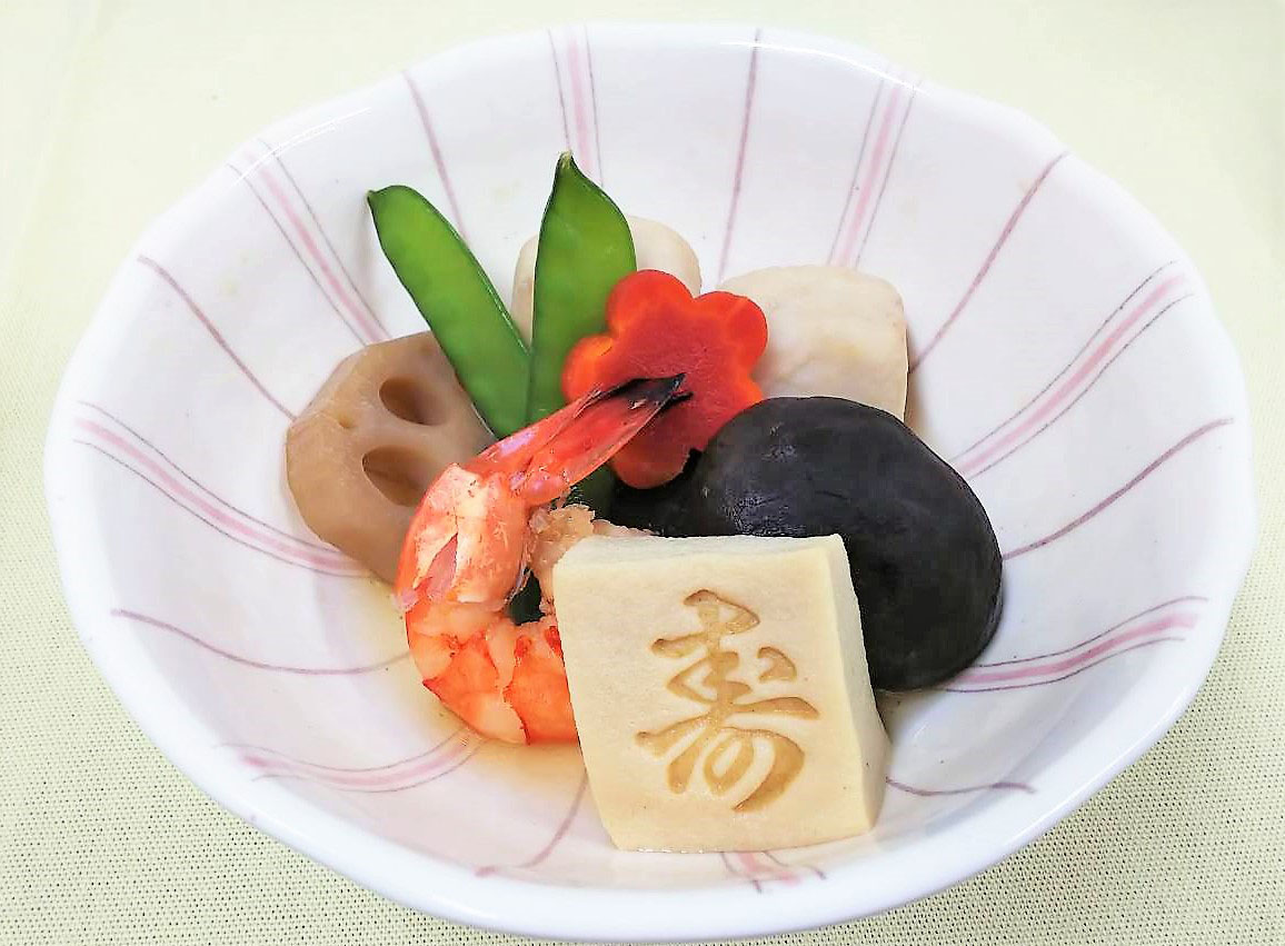 鰻やゆり根が入った茶わん蒸しなどのおせち料理をお召し上がりいただきました。