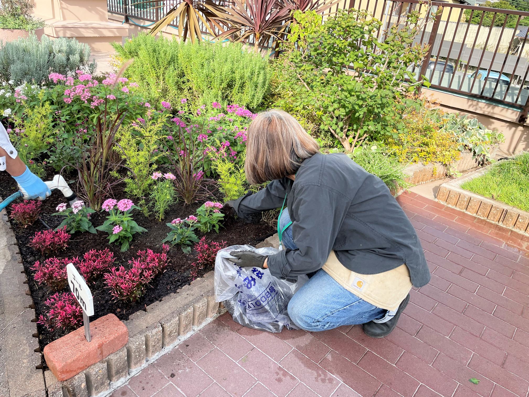これから11月にかけて、花の植え替えの季節。9月下旬には、患者さまになじみの深いキク科の花を中心に植えました。