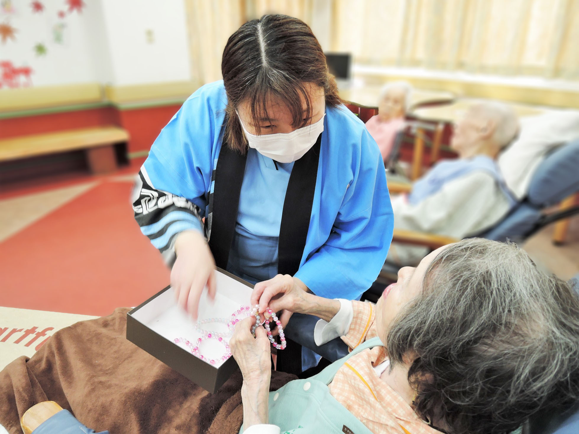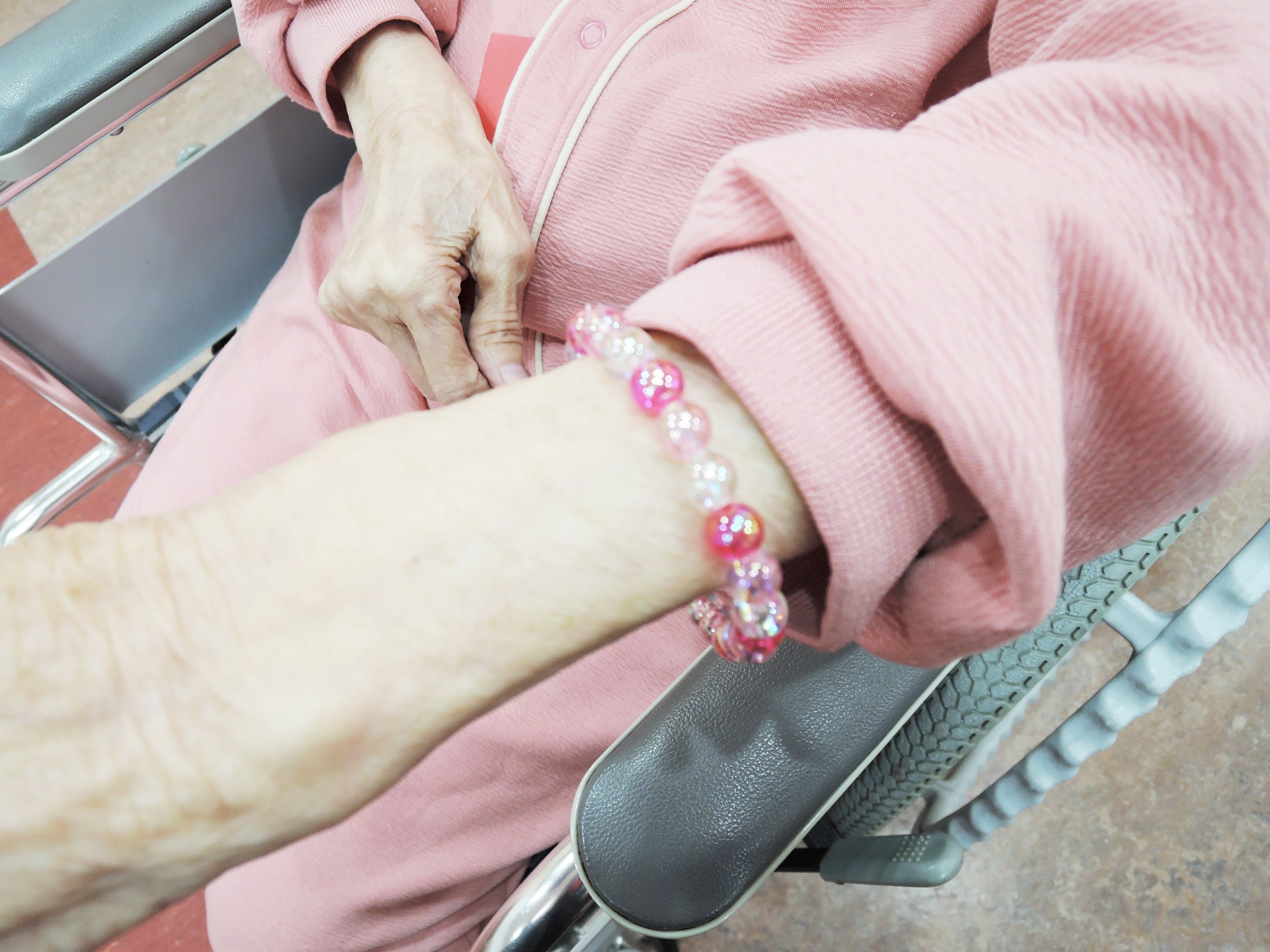 最後に、スタッフ手作りのブレスレットを患者さまにプレゼント。