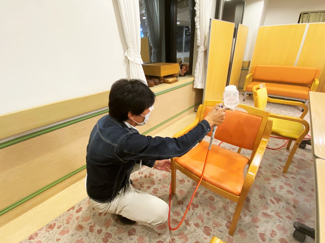 ↑ 皆さまが使用される椅子はひじ掛け、背もたれなど念入りに